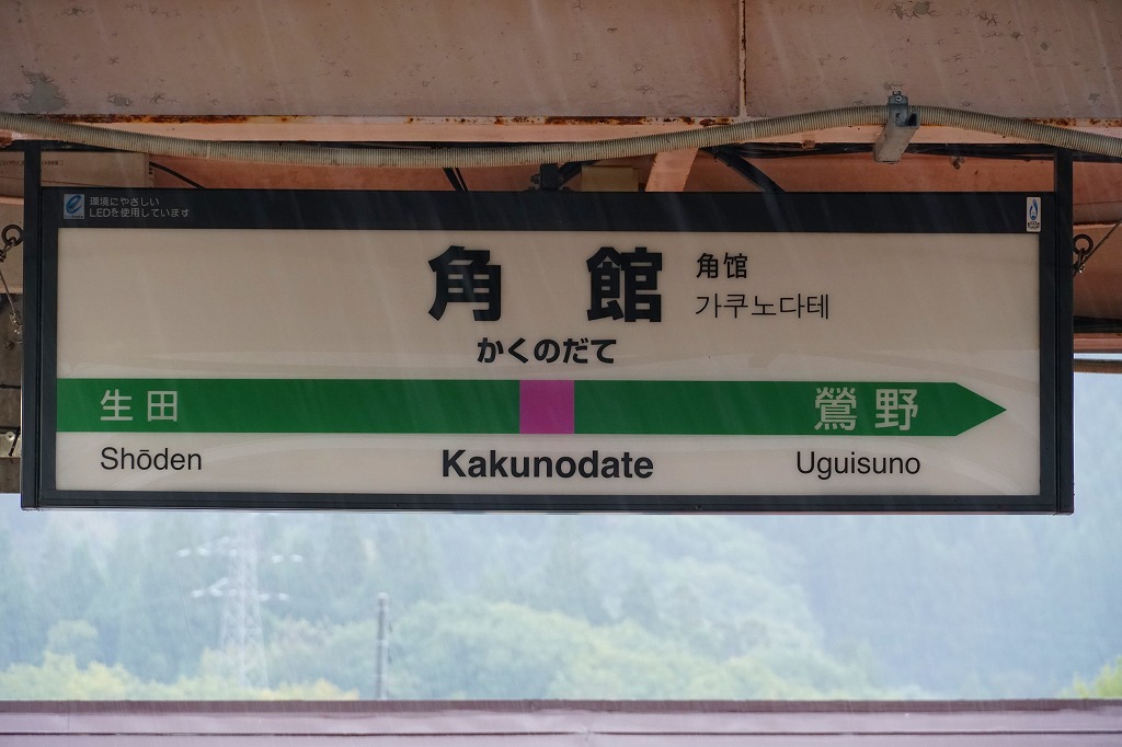 秋田駅から秋田新幹線こまち号で40分強。角館駅がある仙北市は、秋田県の中部の東で2005年に2町1村が合併してできた、人口約2万人の市。角館は戦国時代からの城下町で、武家屋敷と桜並木で年に200万人以上の観光客を集める。角館駅の駅弁はないが、駅のコンビニに秋田駅弁の一部や大館駅弁が入荷する。1921(大正10)年7月30日開業、秋田県仙北市角館町中菅沢。