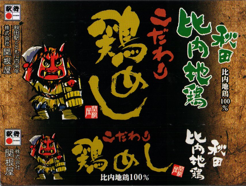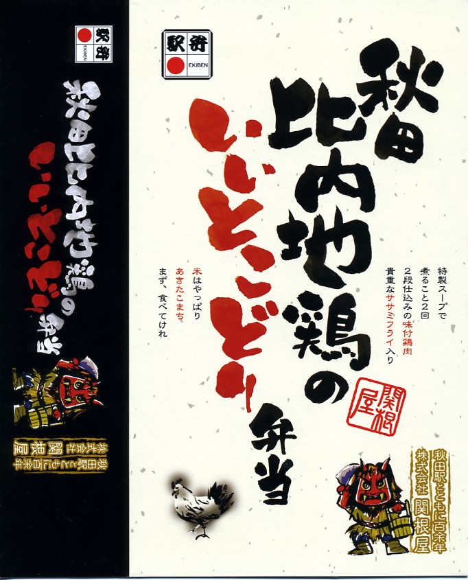 JR東日本発足20周年記念駅弁の秋田駅版として、2007(平成19)年に950円で発売。少々小柄な長方形の容器に透明なふたをして、商品名に鶏となまはげのイラストを書いたボール紙の枠にはめる。中身は白御飯の上に鶏ぶつ切り煮と粒状感のある鶏そぼろを敷き、大根漬といぶりがっこを貼り、ササミフライやぜんまい、ごぼう、昆布巻、がんもどきを添えるもの。価格は2014年時点で1,000円、2022年3月から1,100円、2023年時点で1,150円、2024年時点で1,280円、9月から1,380円。