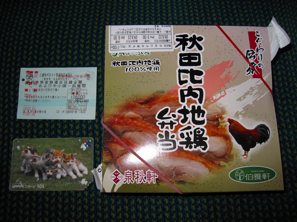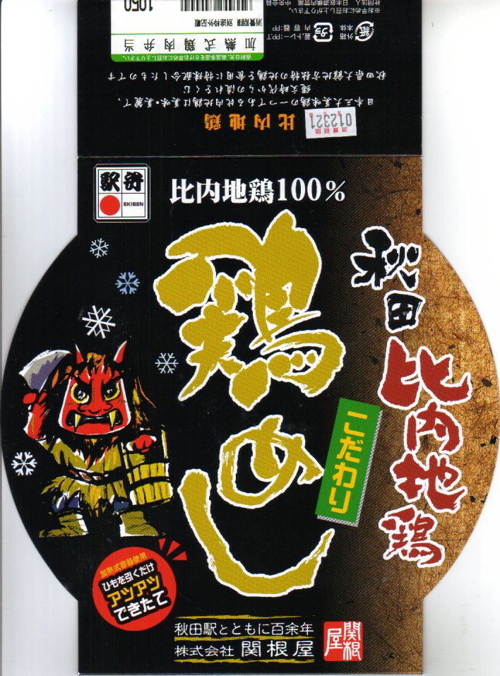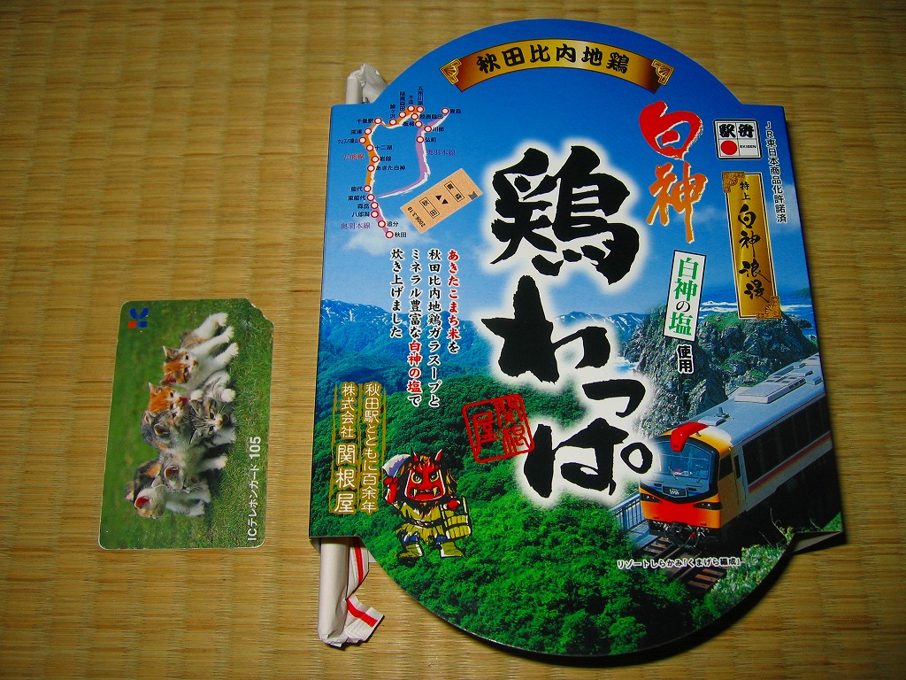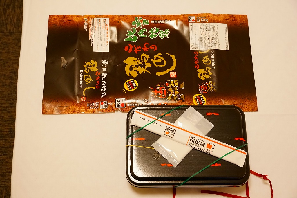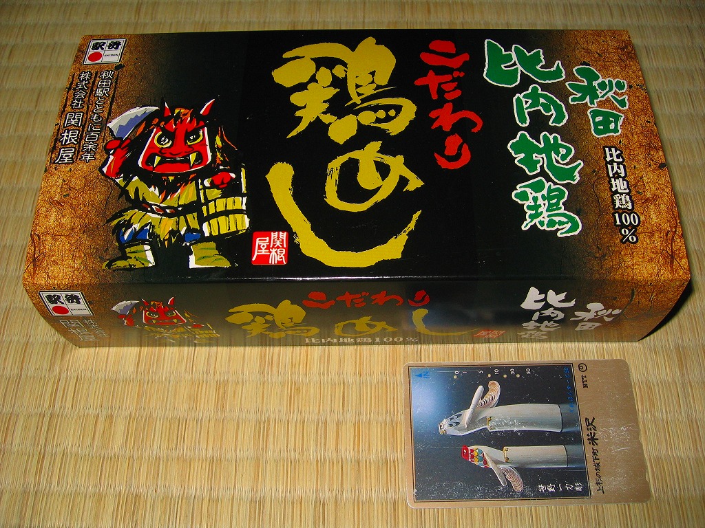 風味も食感も含めて食べてうまい鶏駅弁であり、中身に秋田をびんびんに感じられる駅弁であり、パッケージの絵柄や記載情報が旅を誘う駅弁であり、これはとても良い駅弁ができたものだ。駅弁大会が終わっても現地で長く親しまれるのではないかと思う。価格は2009年の購入時で1,000円、2016年時点で1,050円。2020年あるいは2018年頃までの販売か。