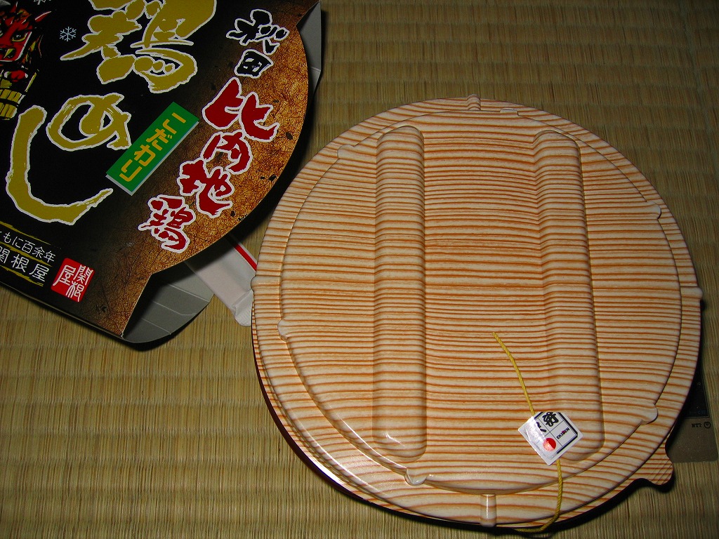 上記の駅弁「秋田比内地鶏こだわり鶏めし」の、2005(平成17)年時点での姿。当時は容器が丸かった。その他は同じ。