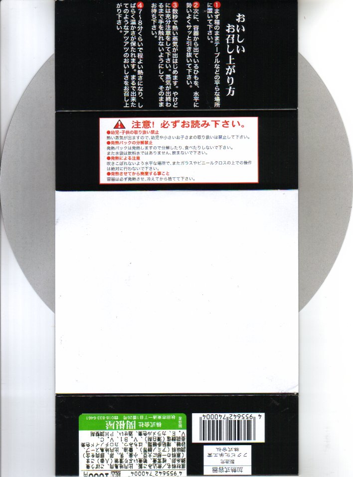 2001(平成13)年1月29日に購入した、昔の秋田駅弁?の紙のふた。東北北海道旅行の帰路に立ち寄った、秋田駅か羽後本荘駅で購入したような気がするものの、紙のふたの実物を見れば駅弁でないことが明らかだし、中身も含めてどうも思い出せない。