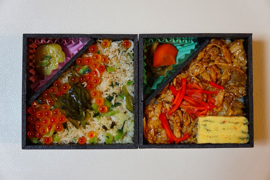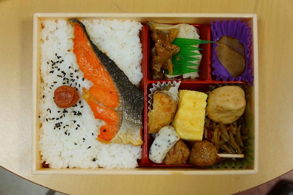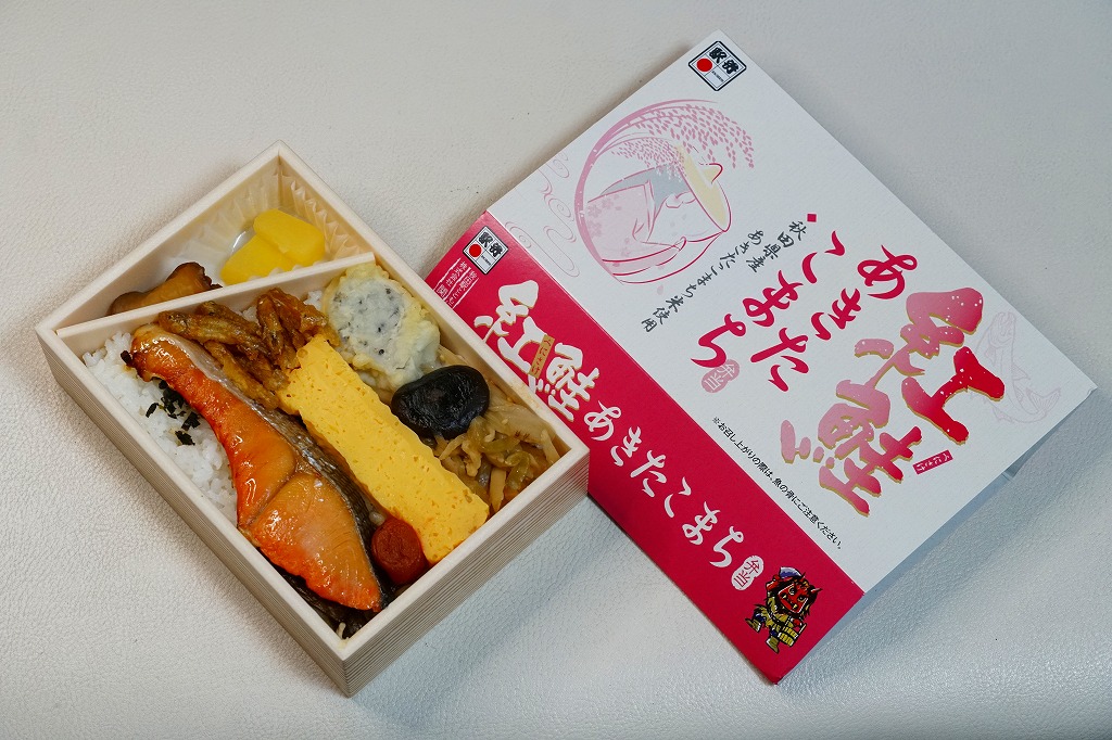 2023(令和5)年10月1日に秋田駅や東京駅などで発売、同日からのJR東日本の駅弁キャンペーン「駅弁味の陣2023」にエントリー。やや小柄な長方形のプラ容器に、秋田県産米あきたこまちの白飯を詰め、紅鮭の塩麹漬け焼き、わかさぎ唐揚、とんぶり入りかまぼこ、玉子焼、生姜ごぼう、きゃらぶき、しいたけで覆い、いぶり大根漬とりんごのコンポートを添える。ボダッコと呼ばれる塩鮭あるいは紅鮭を含め、秋田の素材と料理でできた、並等幕の内駅弁のようなつくりで、上等幕の内駅弁の値段を持つお弁当。11月までの開催期間をもって終売か。