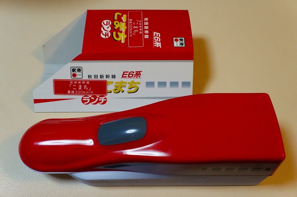 2013(平成25)年3月16日のE6系新幹線電車の営業運行開始に合わせ、「E6系スーパーこまちランチ」の名前で発売。翌2014(平成26)年3月ダイヤ改正での列車名の変更により、「E6系こまちランチ」へ改称。先頭車両の形状を模したプラスティック製容器を使う。