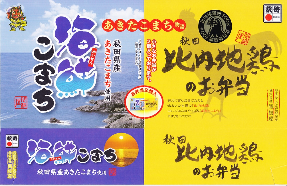 東京駅から新幹線こまち号で約4時間。秋田市は秋田県の中央で日本海に面した、人口約29万人の城下町で県庁所在地。北前船以来の港町でもあり、油田を抱えた工業都市でもあり、以前は商業でも賑わった。駅弁は明治時代の末期までに関根屋が売り始め、以後は大正時代から21世紀までいくつもの業者が進出しては消え、今は関根屋と大館駅の駅弁が駅のコンビニで売られる。1902(明治35)年10月21日開業、秋田県秋田市中通7丁目。