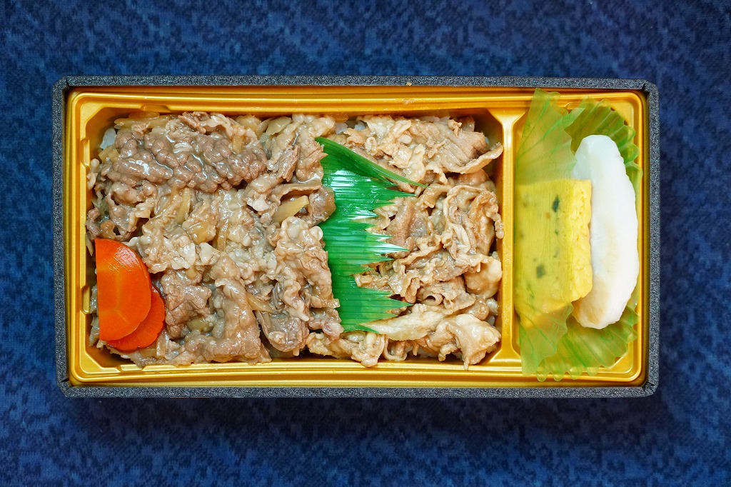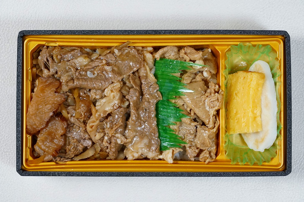 東京駅の駅弁売店「駅弁屋 祭」での、2022(令和4)年の駅弁の日にちなむ4月6日から19日までの「春の新作駅弁大会」において発売か。スリーブの表記に「秋田新幹線開業25th周年記念弁当」と書いたマークあり、秋田新幹線E3系新幹線電車とE6系新幹線電車の写真も使われ、これを祝うことがよくわかる。中身は白飯を豚肉煮と、タケノコとゴボウを混ぜた牛肉煮で覆い、いぶり大根漬で彩り、笹かまぼことネギ入り玉子焼を添えるもの。駅弁の名前と中身が合い、食べればおおむね牛丼。価格は2022年の発売時で1,400円、2024年9月から1,450円。