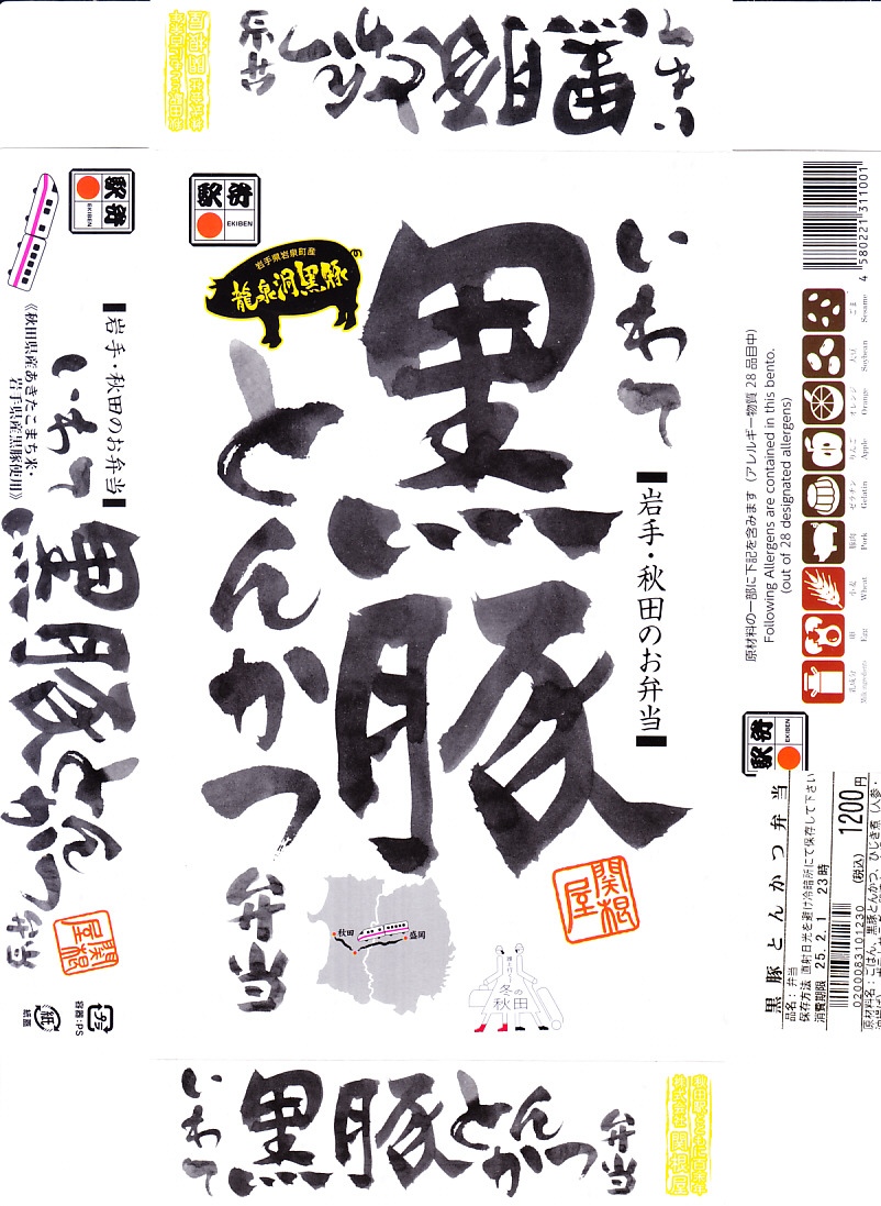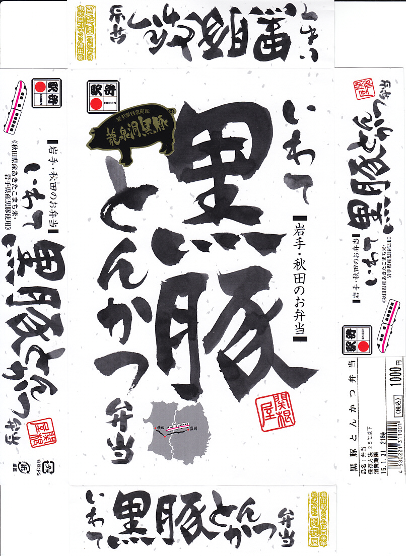 上記の駅弁「いわて黒豚とんかつ弁当」の、2015(平成27)年時点での姿。10年経つのに、まったく変わらない。このように秋田で「いわて」が定着している。