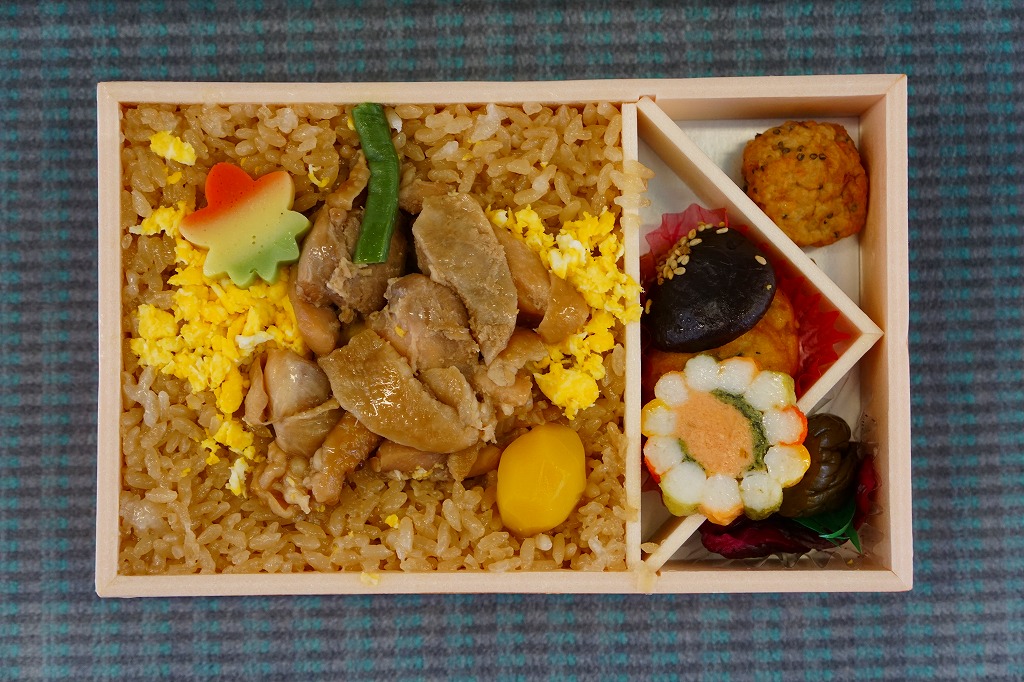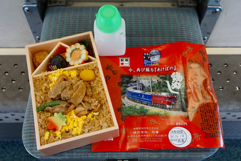 小坂駅跡地の小坂鉄道レールパークの簡易宿泊施設「ブルートレインあけぼの」で、宿泊者に限り事前予約で朝食に購入できるお弁当。中身は大館駅の名物駅弁「鶏めし」と同じ。掛紙が特別版で、宿泊施設のロゴマークに、寝台特急あけぼの号の走行写真が載る。掛紙に「税込価格880円」とあるが、常にポリ容器のお茶(120円)とセットで1,000円にて販売される模様。ポリ容器のお茶のみを買うことはできた。