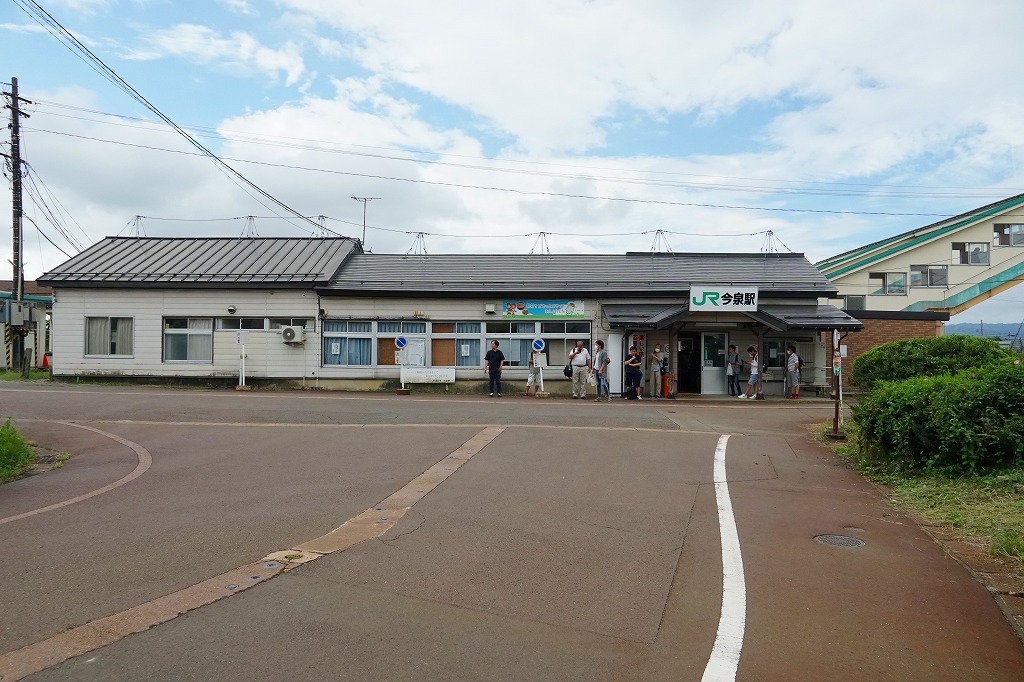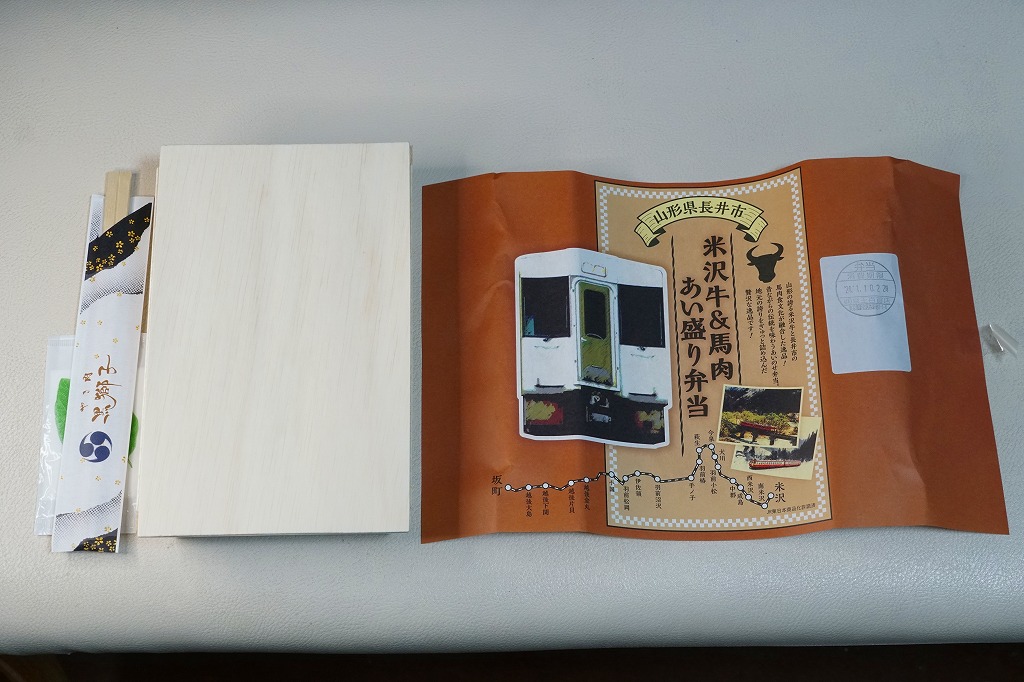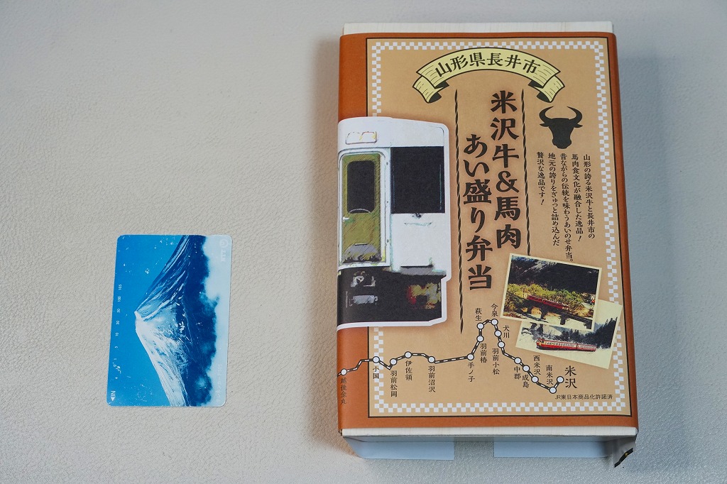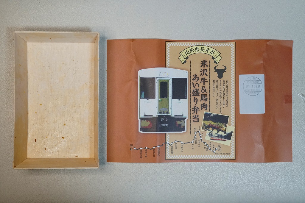 今泉駅は、山形県長井市の米沢盆地にあり、JR米坂線と山形鉄道フラワー長井線が付いて離れて、4方向に路線が広がる駅。現在のJR仙山線と組んで東北地方を横断する亜幹線の主要駅として、1934年から1960年代まで公式な駅弁販売駅であり、牛肉弁当が売られたという。フラワー長井線は国鉄が廃止対象線としたローカル線であり、米坂線も国道の整備と1992年の山形新幹線開業による列車の分断で閑散とし、今泉駅にも店が出るような賑わいはない。今回に駅弁大会へ出現した弁当が、現地で売られることはあるのだろうか。