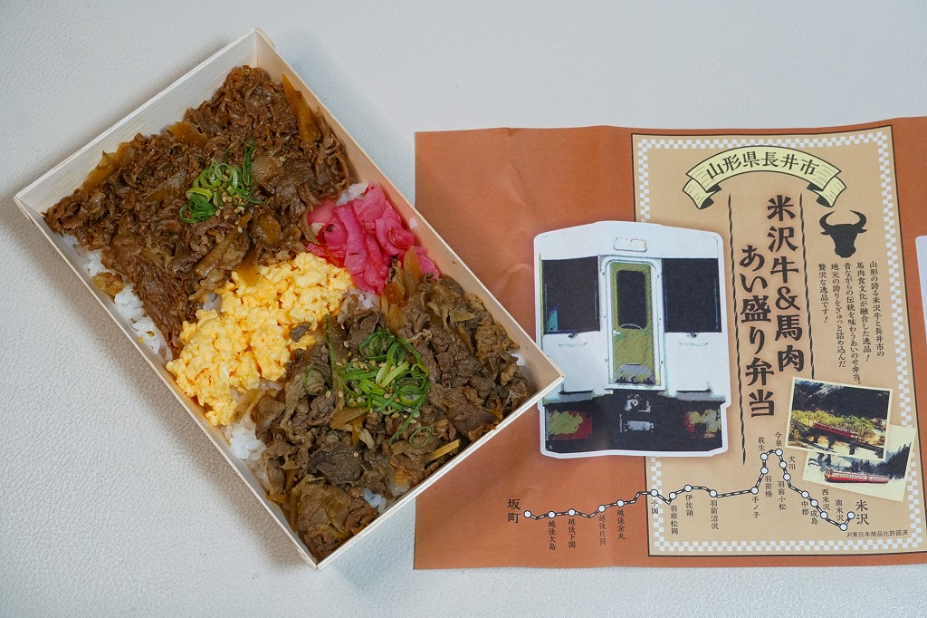 2024(令和6)年1月の京王百貨店の駅弁大会で、「米沢牛&馬肉あい盛り弁当」(1,650円)と「米沢牛ローストビーフ&馬肉あい盛り弁当」(2,500円)を、JR米坂線の今泉駅の駅弁として実演販売。同催事の「がんばれ!ローカル線」企画で、2022年8月の豪雨で今泉駅から坂町駅までの間で運休し再開の見込みがない、JR米坂線の今泉駅と坂町駅の駅弁を名乗る弁当を、催事場で実演販売した。掛紙には商品名と宣伝文と、JR米坂線の路線図や写真を掲載した。
