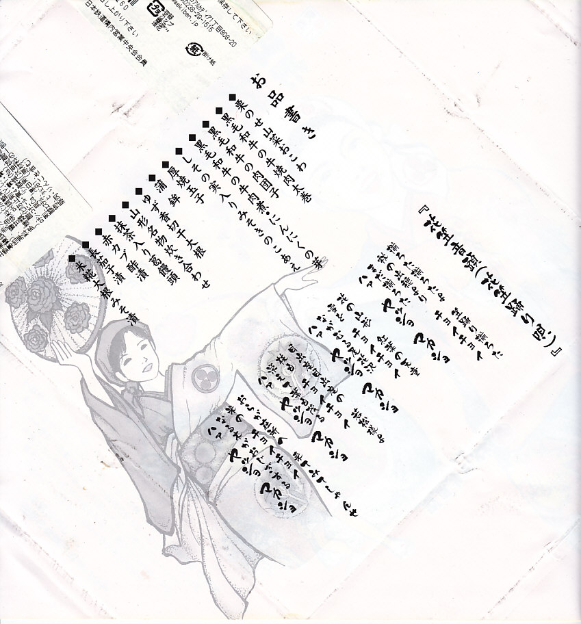 2012(平成24)年1月12日に販売された、米沢駅弁を名乗る弁当の掛紙。掛紙そのものと中身は、上記の2015年のものと変わらない。消費期限の表示方法と、掛紙では分からないが価格が異なる。