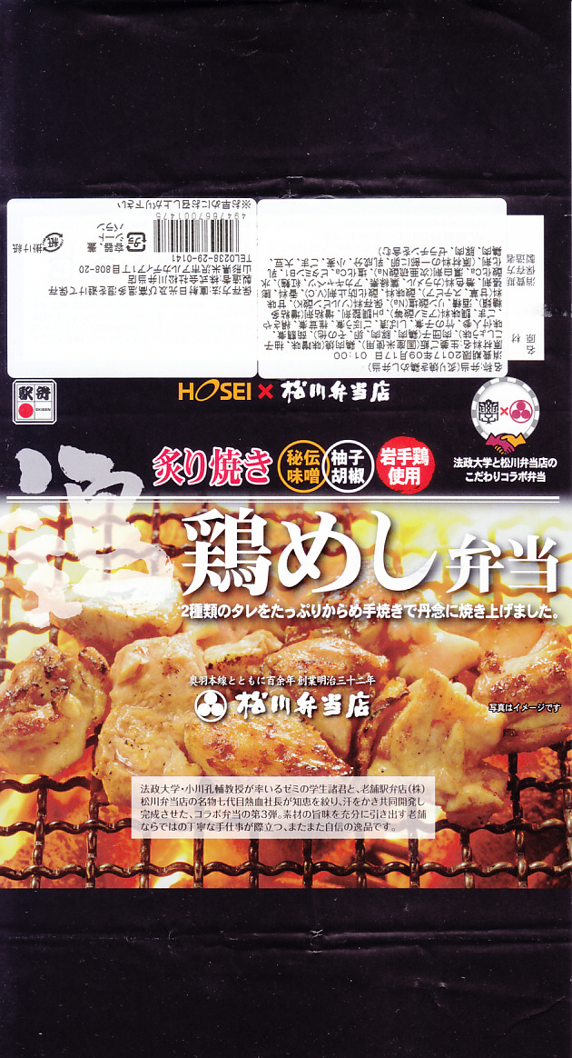 この駅弁はどうも、2018年に「炙り鶏めし」へ改称し、大学コラボを外して980円に値下げのうえ、山形駅のもりべんの駅弁になった模様。米沢駅の松川弁当店は、2017年にもりべんの経営を引き継いでいる。2020年までに予約限定商品となり、2022年に終売か。