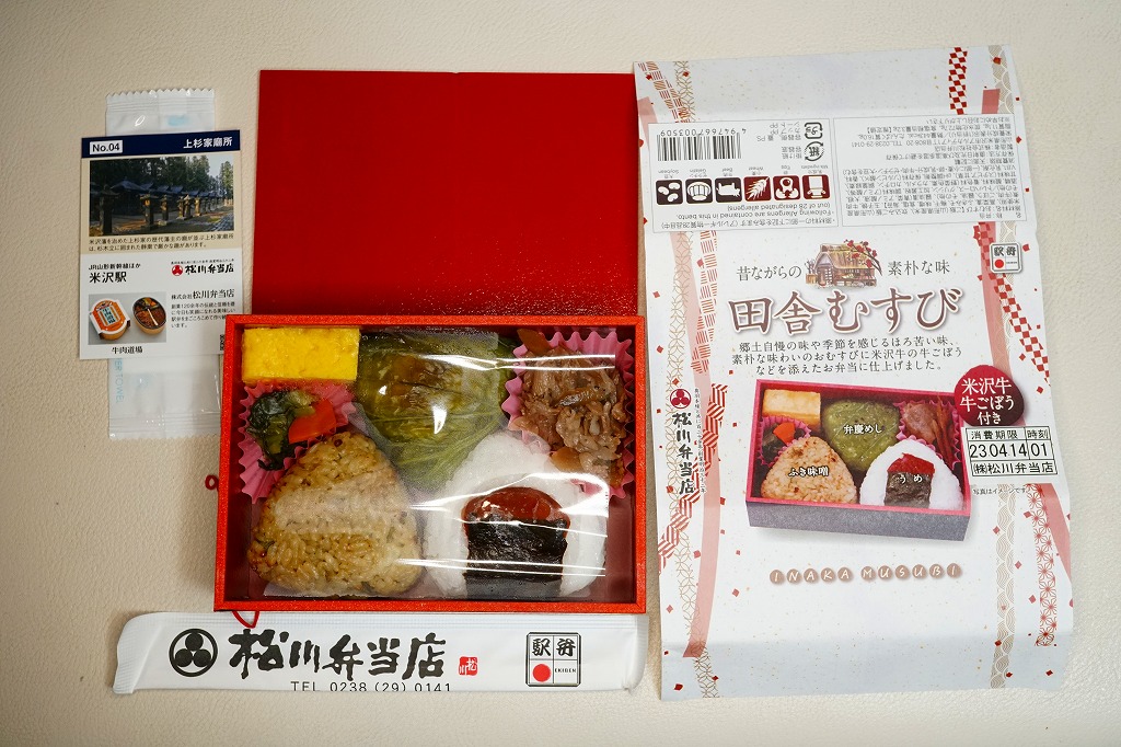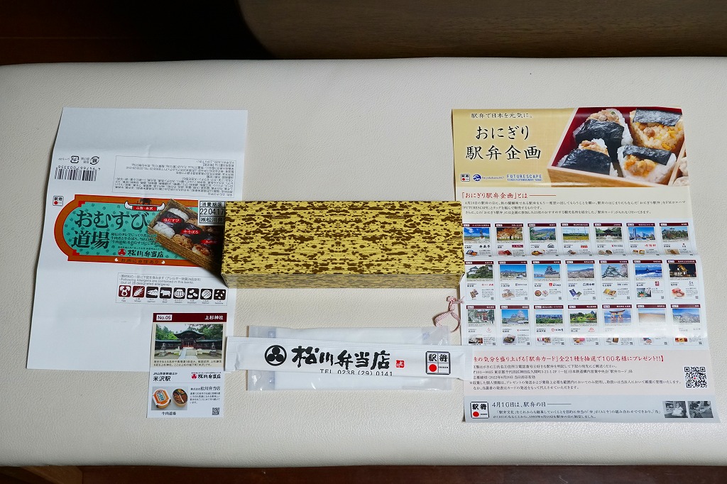 2022(令和4)年4月10日から5月10日まで、米沢、山形、仙台、東京、上野、大宮の各駅で販売。駅弁の日に合わせ、日本鉄道構内営業中央会の会員のうち21社が、FMヨコハマのラジオ番組「FUTURESCAPE」とタイアップし、この年の4月10日から各社の駅売店などで販売した、駅弁の日記念のおにぎり駅弁の、米沢駅バージョンとして販売。今回のキャンペーンで各社に用意された「駅弁カード」が1枚付いてきた。