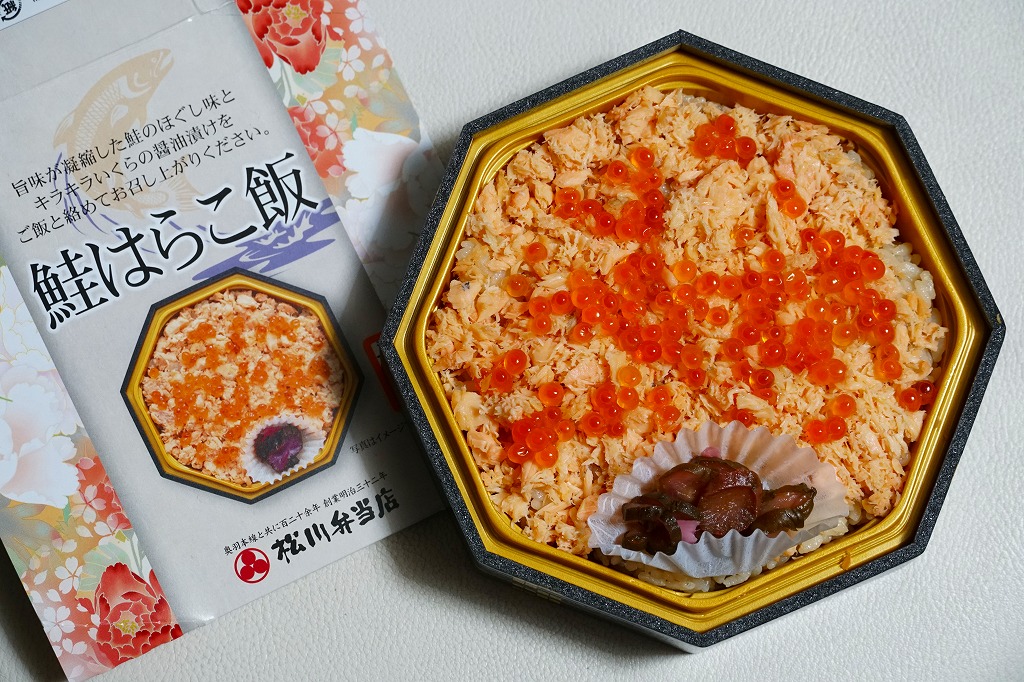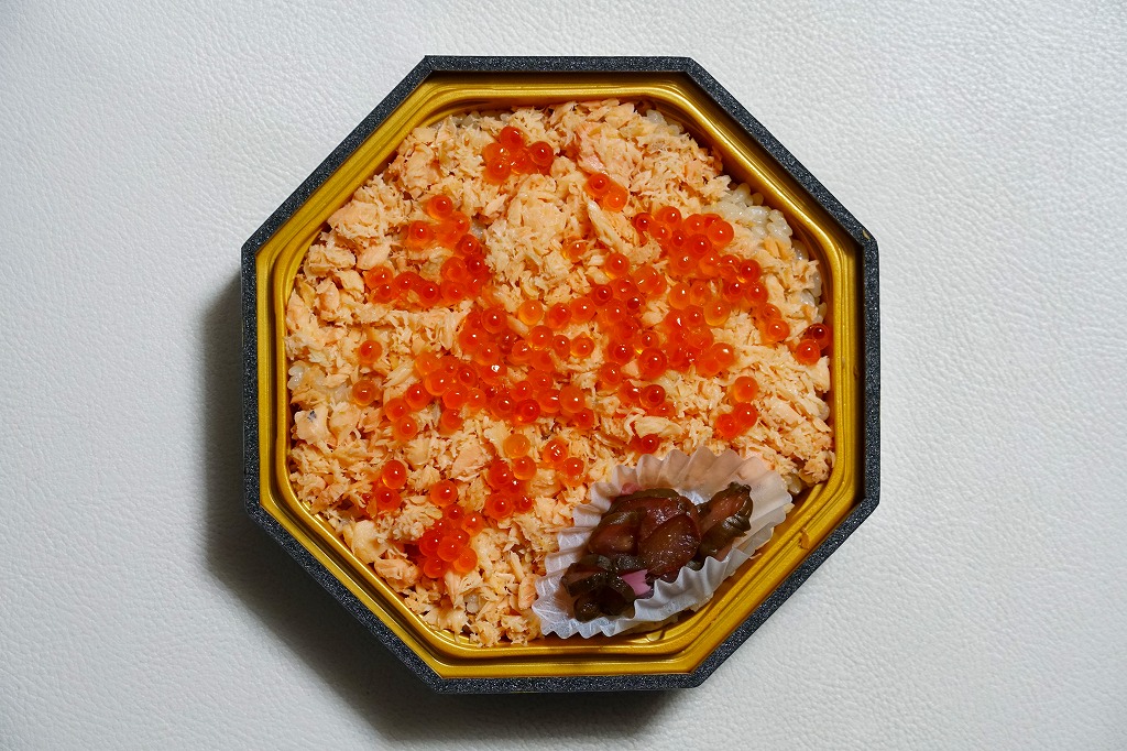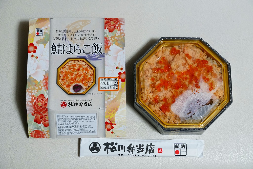 秋冬の駅弁大会シーズンに向けた、2020(令和2)年秋の新商品か。その前の同年2月の鶴屋百貨店の駅弁大会でも販売。正八角形の容器に炊込飯を詰め、鮭フレークで覆い、いくら醤油漬を散らし、柴漬けを添える。仙台駅で1980年代以来の人気駅弁「鮭はらこめし」を、名前と風味で模倣した。だからおいしくても、宮城県や亘理地方の郷土料理が、なぜ山形で米沢なのか、誰もが不思議に思う商品だと思う。また不思議なことに、栃木県の那須塩原駅のコンビニ「ニューデイズ」で、常に売られている。価格は2020年時点で1,200円、2021年時点で1,250円、2023年時点で1,280円。