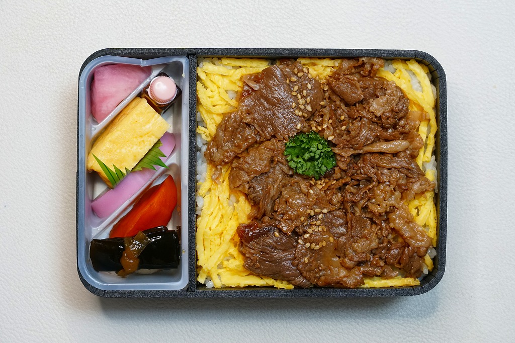 2011(平成23)年の春頃におそらく山形新幹線「つばさ」車内販売向けに発売か。通常版と同じ形で色が黒い容器に透明なふたをして、窓付きの黄色いボール紙枠にはめる。中身は山形米どまんなかの白御飯の上を牛肉煮と牛そぼろで覆い、煮玉子、シイタケ、ニンジン、とうふ、糸こんにゃく、インゲンを載せ、漬物と白玉を添えるもの。