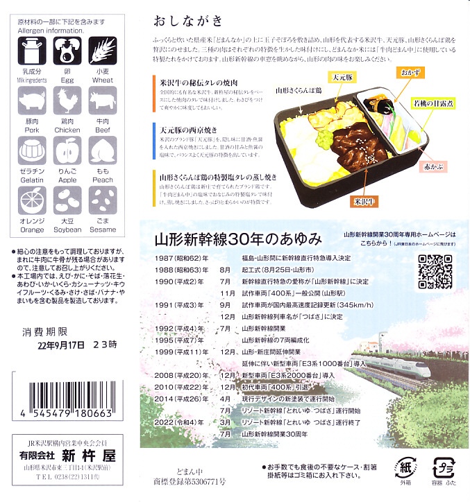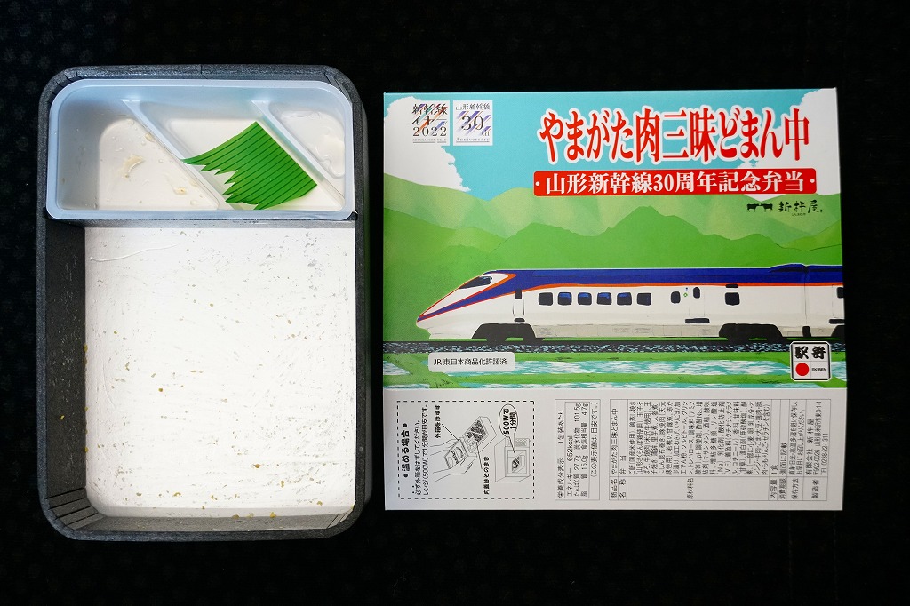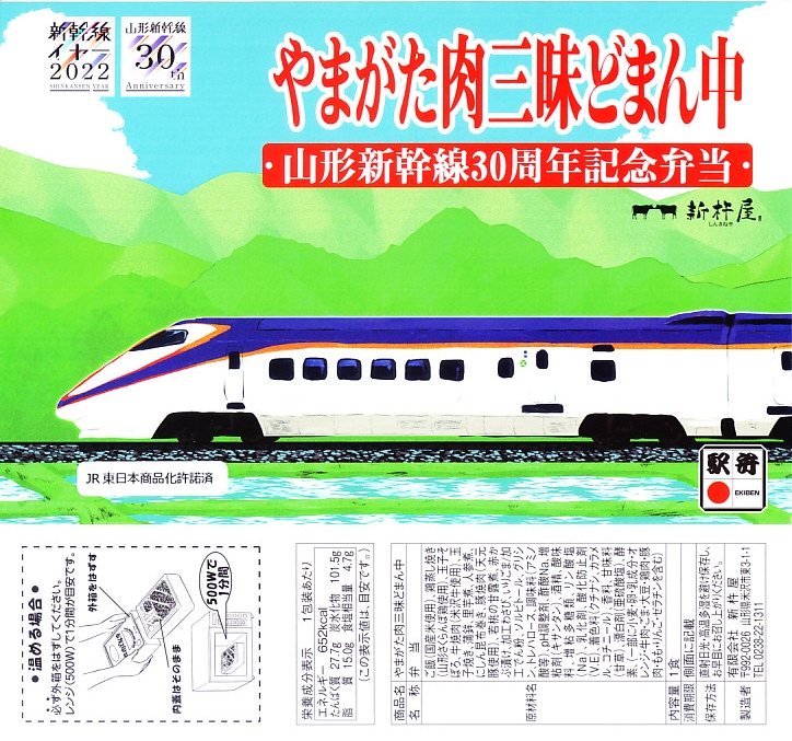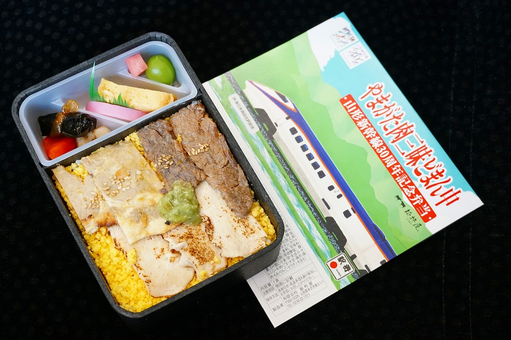 山形新幹線開業30周年記念弁当として、2022(令和4)年9月9日から10月31日まで、福島駅〜山形駅の山形新幹線停車駅6駅と、東京、上野、大宮、仙台の各駅で販売。これと7〜8月の第1弾の米沢駅松川弁当店「米沢牛焼肉弁当」(1,500円)や、11〜12月の第3弾の山形駅もりべん「The山形弁当」(1,500円)は、JR東日本仙台支社山形統括センターと各調製元との連携により企画された。