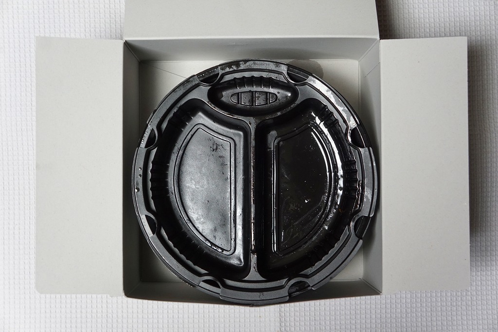 商品名は「加熱式牛たん重」とも「仙台仕立て牛たん重」ともよめる。2023(令和5)年1月の京王百貨店と阪神百貨店の駅弁大会で輸送販売。調製元は米沢駅の駅弁屋であるが、これは米沢駅でなく仙台駅その他各駅や各地で輸送販売するための商品ではないか。箱詰めした丸い加熱機能付き容器に白飯を敷き、牛たん焼で覆い、たくあんを添える。つまり、牛たん駅弁の元祖である仙台駅の「網焼き牛たん弁当」と、同じようなつくり。きっとこういう商品を仕入れる売店の需要があるのだろう。