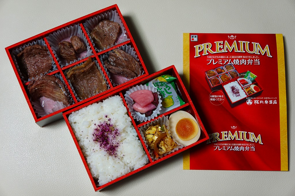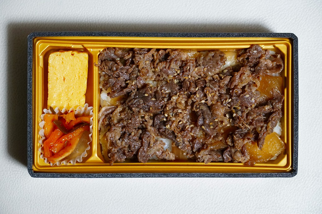 2017(平成29)年9月12日に、スーパー大手「イトーヨーカドー」の駅弁空弁フェアでデビューか。翌月からのJR東日本の駅弁キャンペーン「駅弁味の陣2017」にエントリー。中身はパッケージの写真のとおり、上段に6種12切れの牛焼肉を、下段に御飯と煮玉子とナムルと漬物を詰める。