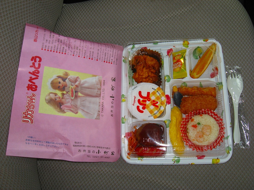 中身はリカちゃんが好きそうなものにしたそうで、実際にプリンは好物とされる。しかしおもちゃも中身も安物で、もう少ししっかり作り込めばと思った。かつて公式な駅弁販売駅であった鉄道駅がすぐ近所(磐越東線小野新町駅徒歩約10分)にあるため、いつでも駅弁を名乗れそうな気がする。販売店はかつての国鉄バスの小野新町営業所の跡地に建つ。この店はどうも現存しない模様。