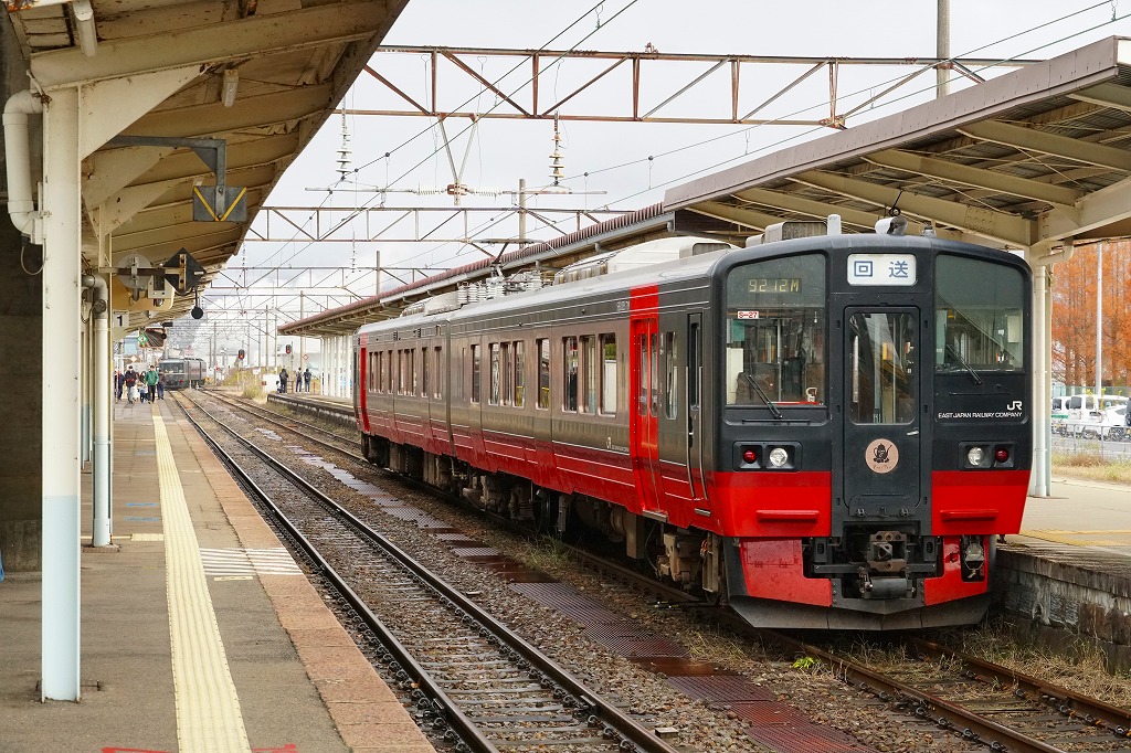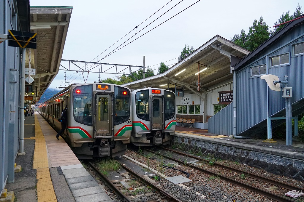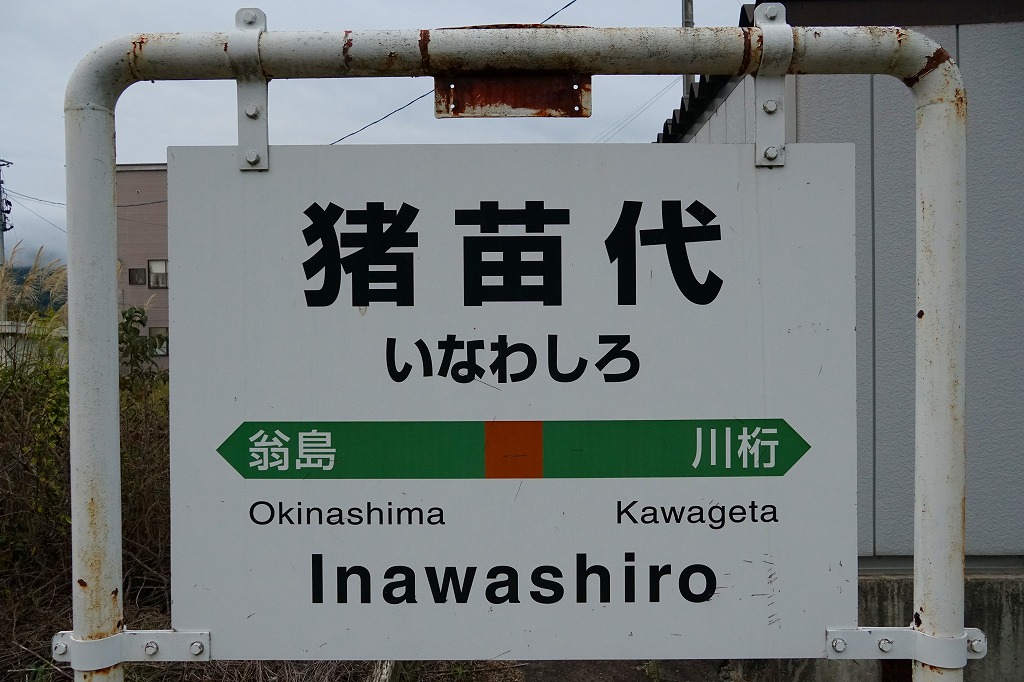 会津若松駅から磐越西線の列車で40分前後。阿賀野川に面した荻野は、1000万年前の海の生き物の化石が出土し、旧石器時代の遺跡があり、江戸時代には漆や蝋や和紙の産業があり、新郷ダムの完成で発電と漕艇が行われる、2006年に喜多方市へ吸収されるまで単独で村制を敷いた高郷村の玄関口。荻野駅では1920年代に駅弁が売られた可能性がある。1914(大正3)年11月1日開業、福島県喜多方市高郷町上郷字馬場頭。