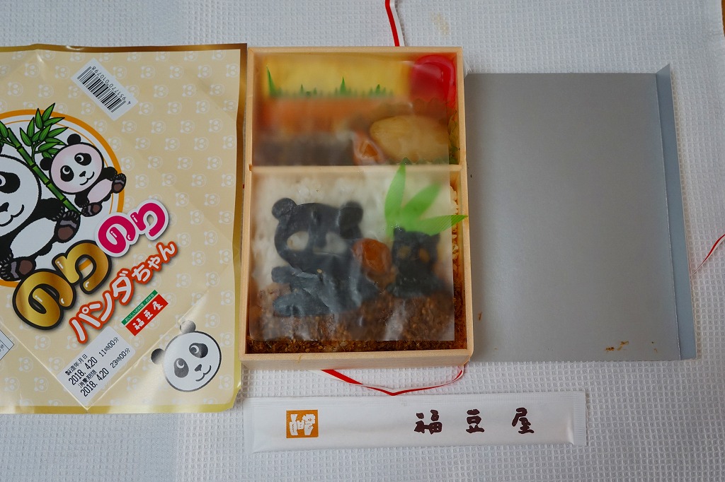この駅弁は、2017(平成29)年6月に生まれ、9月に名前「シャンシャン」(香香)に決め、12月に公開された経緯が東京のテレビを賑わせた、東京は上野動物園の赤ちゃんパンダにちなんでいるのではないかと思う。東京都心でのパンダの誕生に、東京のメディアつまり日本全国のメディアが騒ぎ、上野動物園には2時間から4時間待ちの大行列ができる。こうやって東京都心でも駅弁が買えた。一方で、和歌山県白浜の動物園「アドベンチャーワールド」では、ほぼ2年毎に赤ちゃんパンダが誕生し公開されていたにもかかわらず、ローカルニュースの扱いであり、少なくとも首都圏のテレビを見る人にはほとんど知られておらず、パンダの駅弁の存在はまったく知られていない。