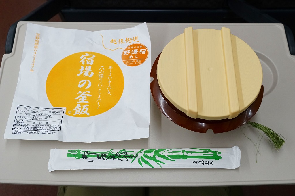 商品の名前は「野澤宿めし(のざわしゅくめし)」とも。2021(令和3)年5月のゴールデンウィークに、福島県耶麻郡西会津町野沢の「道の駅にしあいづ」で発売。6月19日から、磐越西線の観光列車「SLばんえつ物語」の運転日に、野沢駅のホーム上での販売を始めたという。調製元は西会津町の野沢駅の近くで温浴、宿泊、食堂などの観光施設を運営する第3セクター会社。
