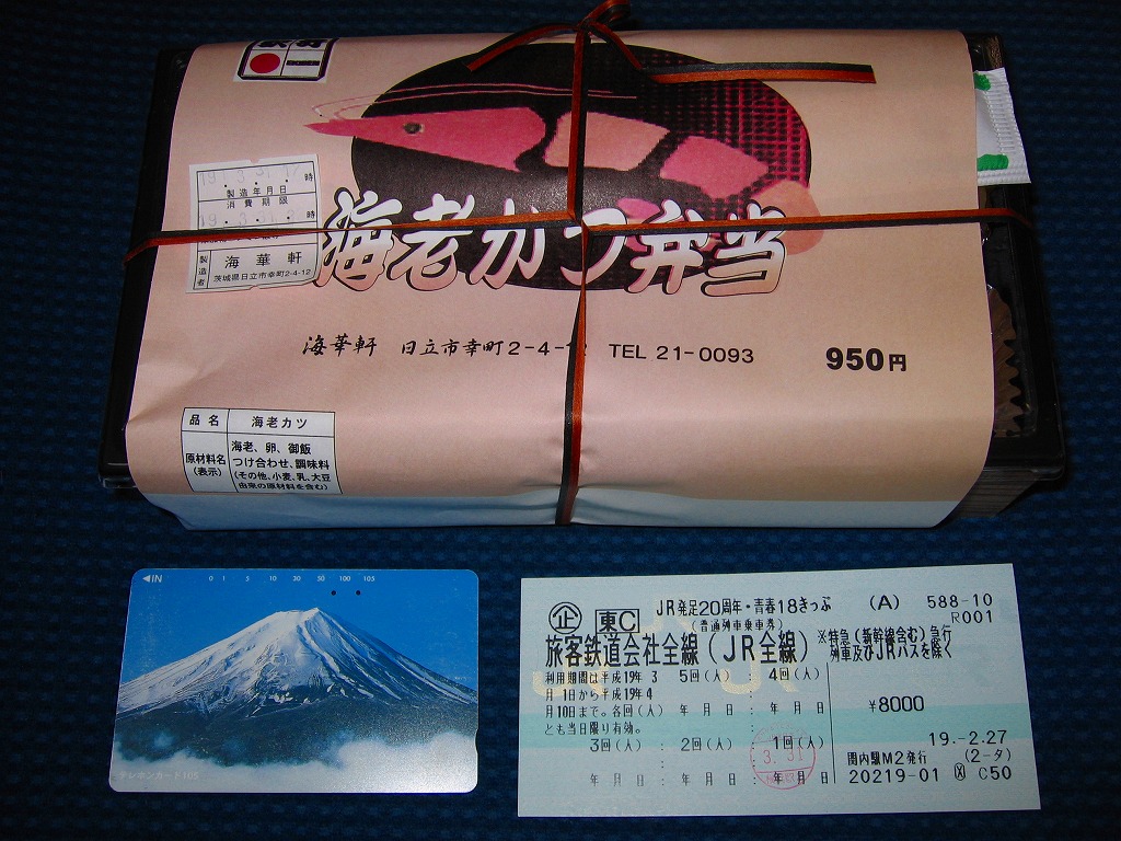 2007(平成19)年3月31日に購入した、日立駅弁の掛紙。いわき駅で購入。駅では買えなくなったが、上記の2023年のものと、値段と海老の本数が異なる以外は、おおむね変わらない。掛紙の絵柄も、基本的なところは変わらない。