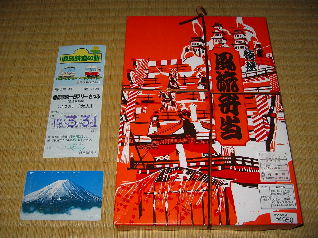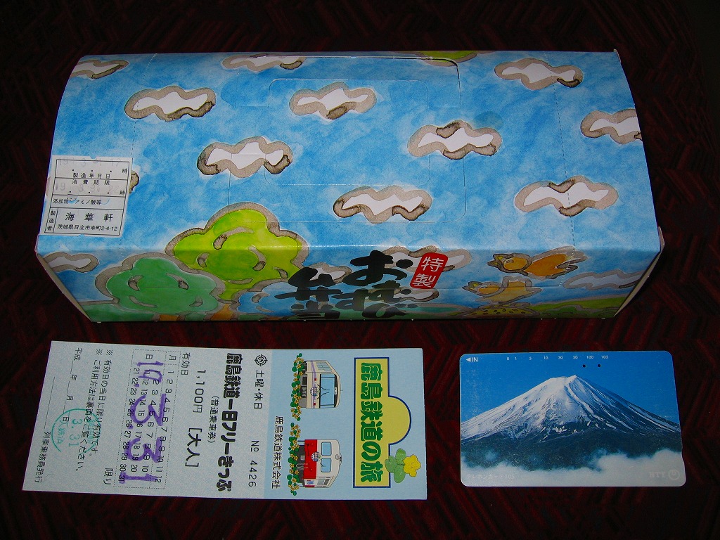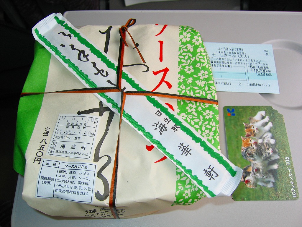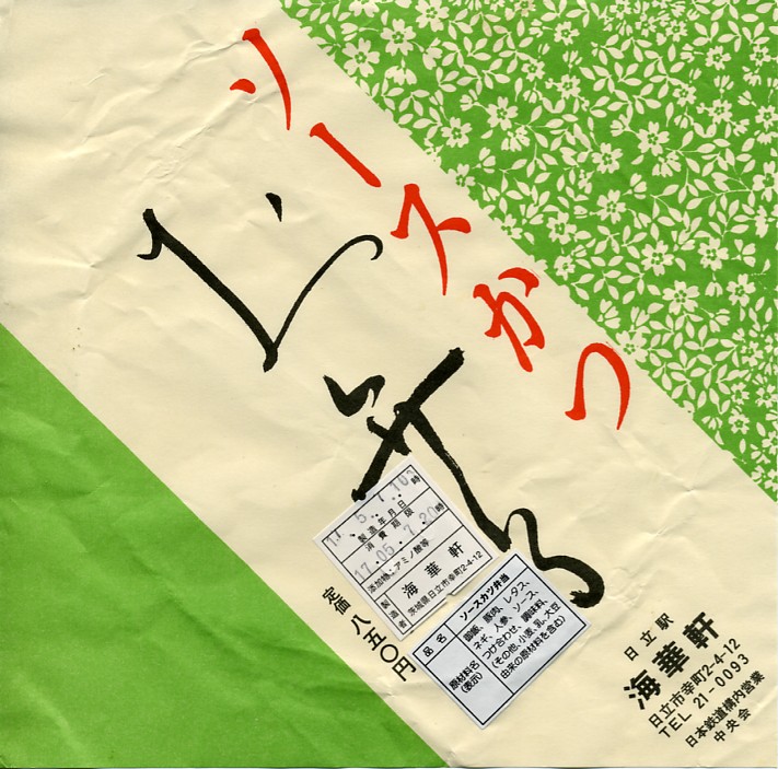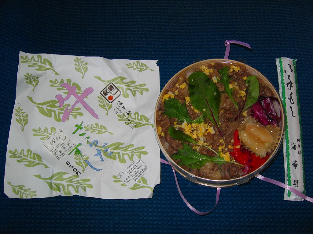 2005(平成17)年5月7日に購入した、日立駅弁の掛紙。上記の2023年のものとの違いは、値段の他には、容器がプラ製だったことと、駅で売られる駅弁であったこと。中身や風味は変わらない。
