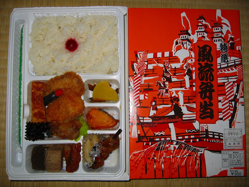分量と濃い味付けとアブラものの多さで、昭和のモーレツなサラリーマンが食べていそうなお弁当。日立駅では非常に入手が困難であり、その状況は変わらないようだが、いわき駅での日立駅弁販売開始で、そちらでは簡単に買えるようになった。2008年に調製元が駅弁から撤退したため、この駅弁も終売となった。