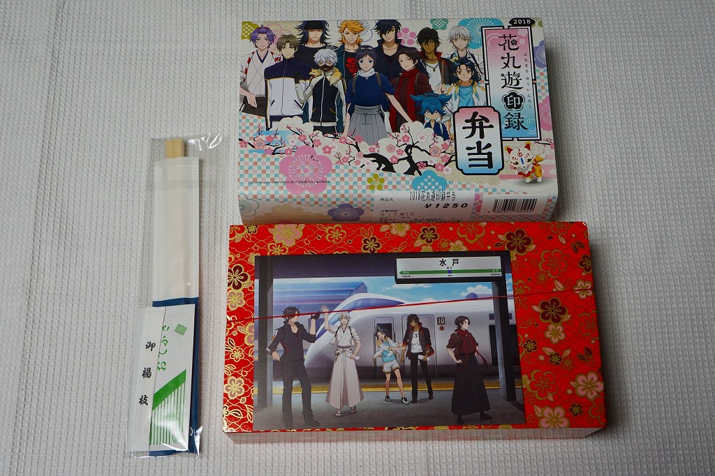 前年に続き、2018(平成30)年2月17日から3月25日まで、水戸駅と東京、品川、新宿、上野の各駅で販売。DMMのオンラインゲーム「刀剣乱舞」と、これを原作としたテレビアニメ「刀剣乱舞−花丸−」と、JR東日本水戸支社とのタイアップによる、偕楽園での「水戸の梅まつり」開催期間中に実施するスタンプラリーの期間中に販売された記念駅弁。掛紙の絵柄はもちろん、ゲームやアニメのキャラクターでできている。