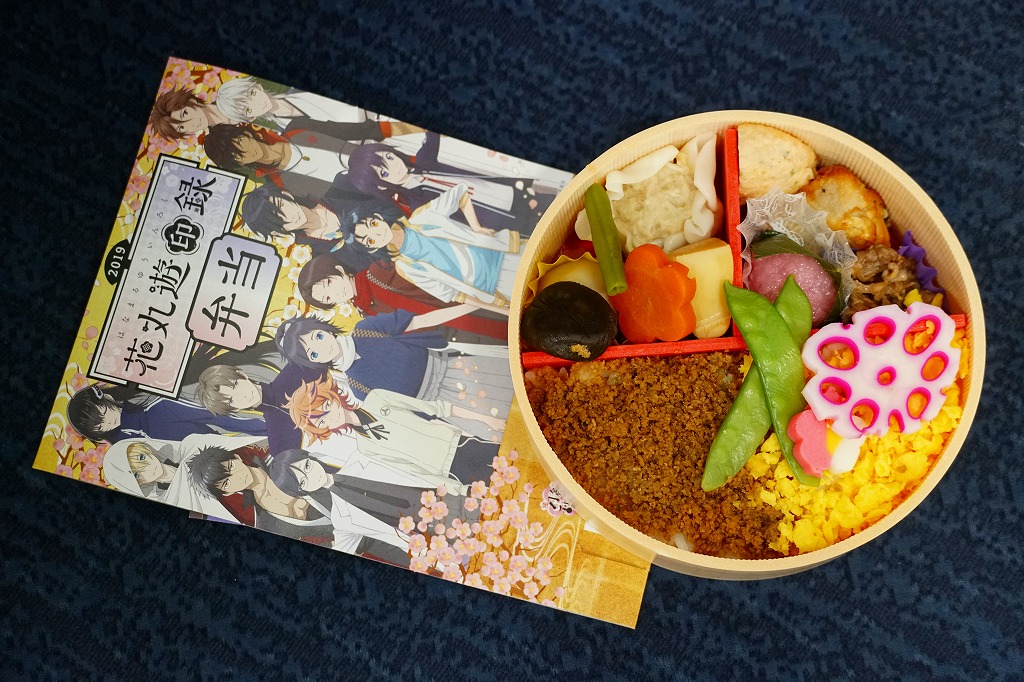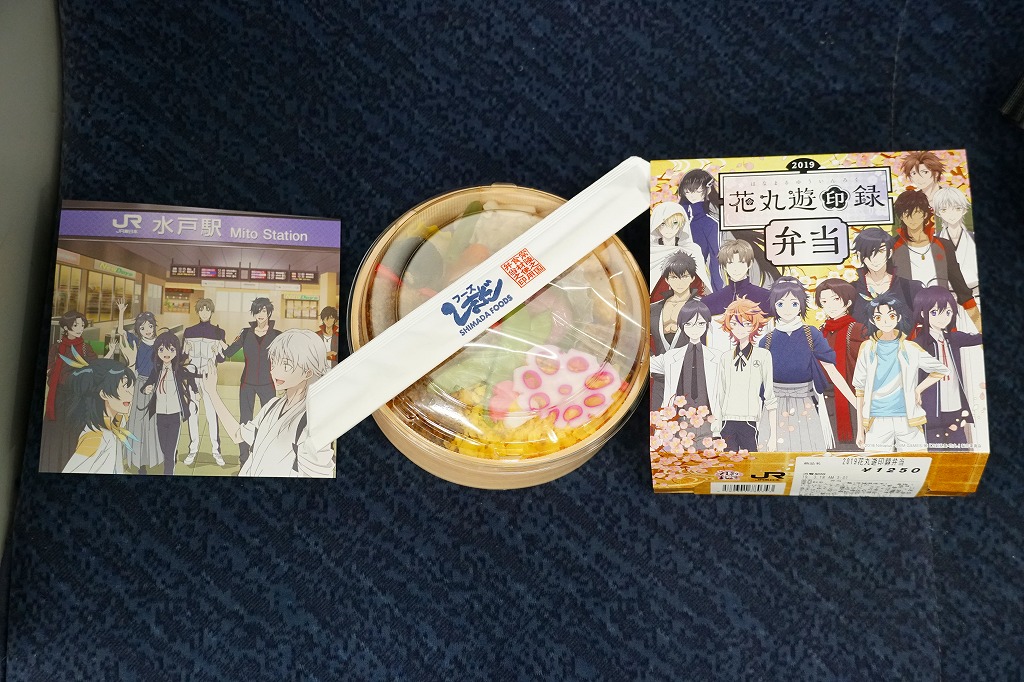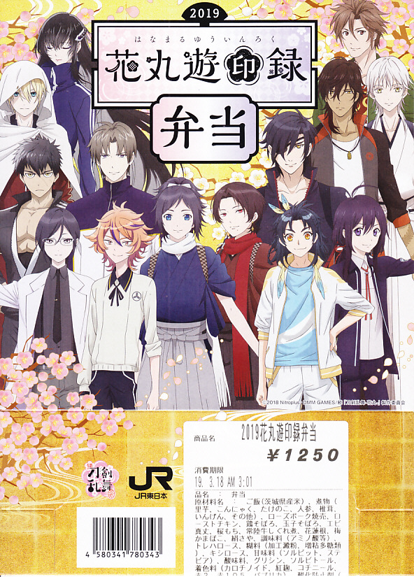 前年に続き、2019(平成31)年2月16日から3月24日まで、水戸駅と東京、品川、新宿、上野の各駅で販売。DMMのオンラインゲーム「刀剣乱舞」と、これを原作としたテレビアニメ「刀剣乱舞−花丸−」と、JR東日本水戸支社とのタイアップによる、偕楽園での「水戸の梅まつり」開催期間中に実施するスタンプラリーの期間中に販売された記念駅弁。スリーブの絵柄はもちろん、ゲームやアニメのキャラクターでできている。