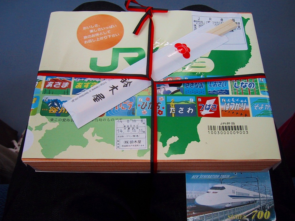2001(平成13)年4月10日に発売。今までなぜなかったのかが不思議な、水戸納豆を題材にした駅弁。底が深い楕円形の木製風ボール紙製容器の中に、納豆の天ぷらの軍艦巻がふたつ、納豆の高葉巻のり巻がふたつ、納豆と挽肉の炒め物を卵で包んだ手まり寿司がひとつ、これで550円。容器は小ぶりながら安くて量があり、中身はまさに納豆づくし。味にキレもあり、納豆嫌いとあまり糸を引かない納豆を認めたくない方以外にはおすすめできる。