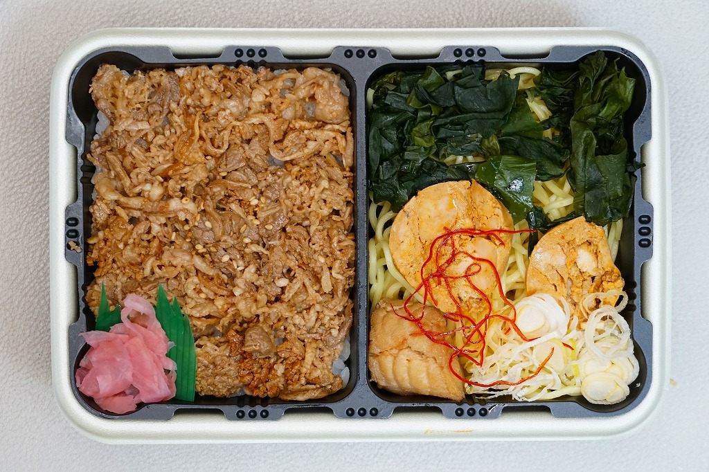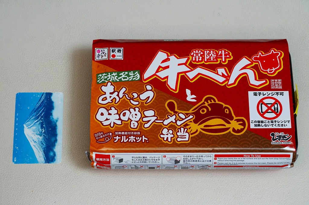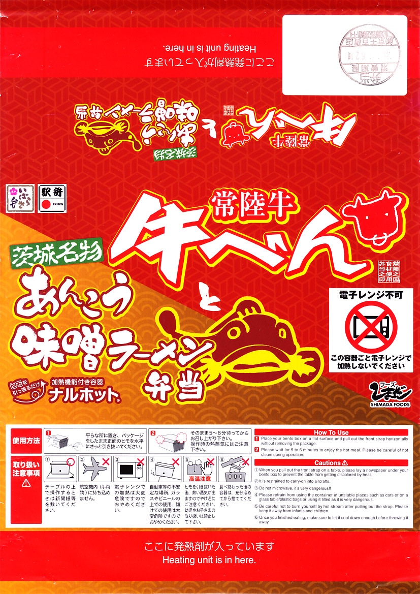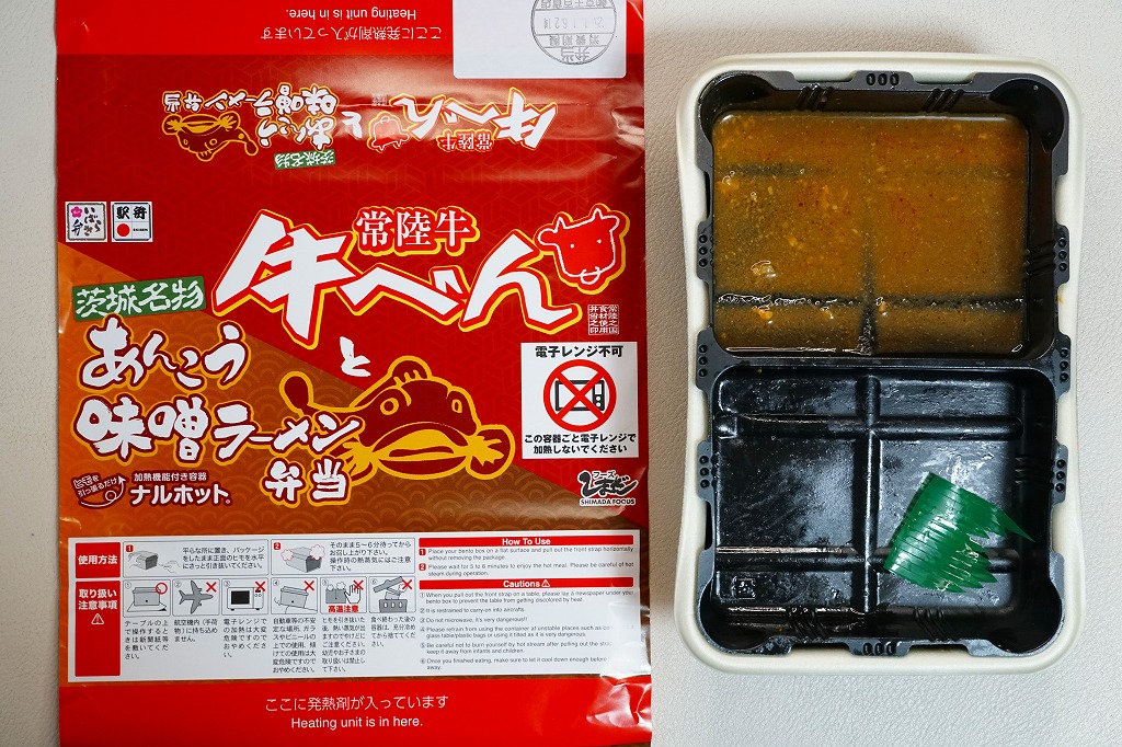 2025(令和6)年1月の京王百貨店の駅弁大会で、出水駅の駅弁として実演販売。今回の催事場で出水駅「鹿児島黒豚炙り焼豚ラーメンとまかない角煮めし」と新千歳空港駅「駅めん吉山商店×美食千歳」との「よくばりコラボ!駅弁×ご当地ラーメン」企画を担った。商品名に牛とアンコウのイラストを記した赤い掛紙を巻く、長方形の加熱機能付き容器に、白飯を詰めて常陸牛のしぐれ煮と白ごまで覆い大根桜漬を添え、ラーメンを詰めてアンコウの味噌煮、あんきも(アンコウの肝)煮、わかめ、ねぎ、糸唐辛子で覆う。ラーメンのスープを添付。駅弁にしてよかったためしがないと思うラーメンは、水戸駅弁「あんこう三昧弁当」の具で補われ、水戸駅弁のスタートアップ「常陸牛牛べん」も詰めて、これならば悪くない。この大会でのみの販売か。