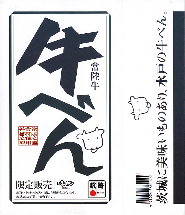そこで、かどうか、表向きはJR東日本水戸支社とNREが共同で弁当を開発し、実際はおそらく地元で弁当屋を探してきて、「常陸之國(ひたちのくに)美味紀行」(1,000円)「牛べん」(1,000円)「豚べん」(950円)「昔おにぎり」(500円)で4種の駅弁を、水戸駅と常磐線特急列車の車内販売で売り始めることとなった。調製元は水戸市内の居酒屋チェーン店。単に駅売店や車内販売に弁当を卸すだけなら得る必要のない駅弁マークが、発売の当初から入っていた。