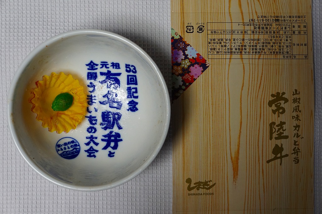 2017(平成29)年12月22日に水戸駅で発売。翌2018(平成30)年1月の京王百貨店の駅弁大会で、下記の特製どんぶり入りのものを売るために開発した新商品ではないかと思う。その会場では当初、特製どんぶり版のみ実演販売していたが、いつしかこの通常版も併売するようになっていた。