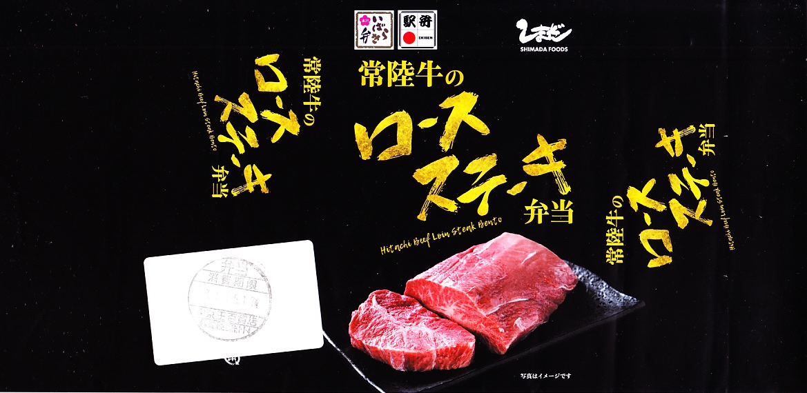 2023(令和5)年1月の京王百貨店の駅弁大会で、これと 「常陸牛のロースステーキとすき焼き弁当」と「常陸牛のロースステーキとローストビーフ贅沢盛り弁当」の3種を、水戸駅の駅弁として実演販売。最も高価なこれは、長方形の容器に白飯を詰め、常陸牛のロースステーキで覆い、くりと青菜と煮玉子とタレと紅塩を添え、食材の写真が美しい黒い掛紙を巻いた。まだ赤くて噛み切れない牛ステーキが印象的で、こんな駅弁は見たことがない。駅弁を売る水戸駅のコンビニで見ることが、できたかどうか。同月の阪神百貨店の駅弁大会でも販売した。