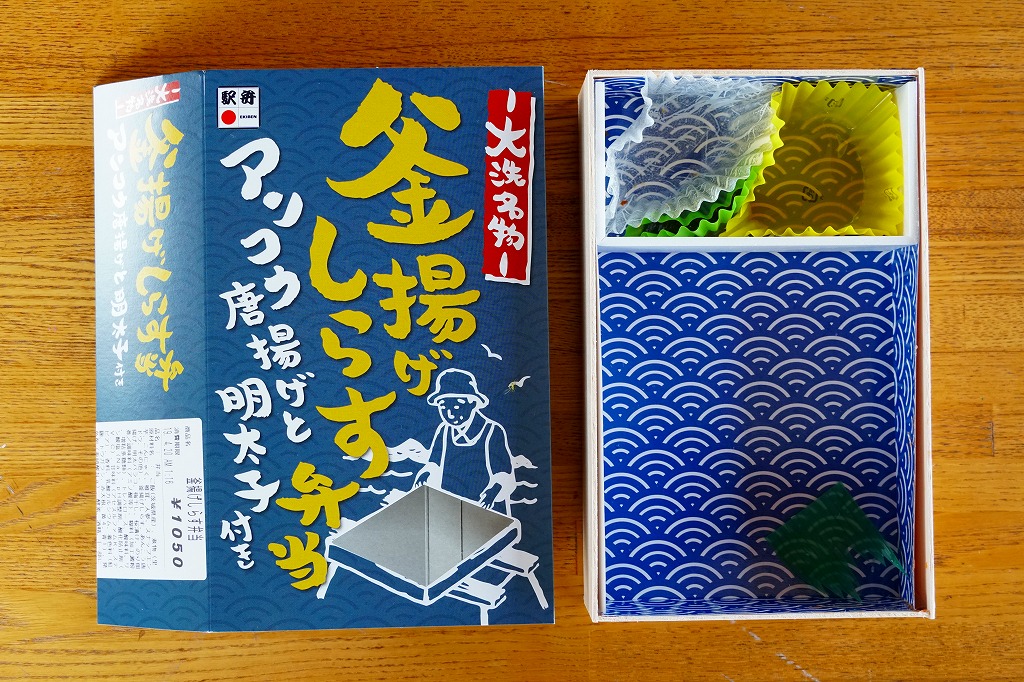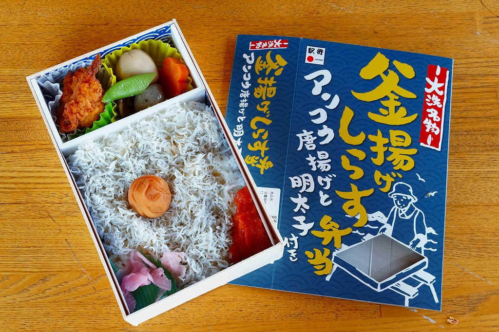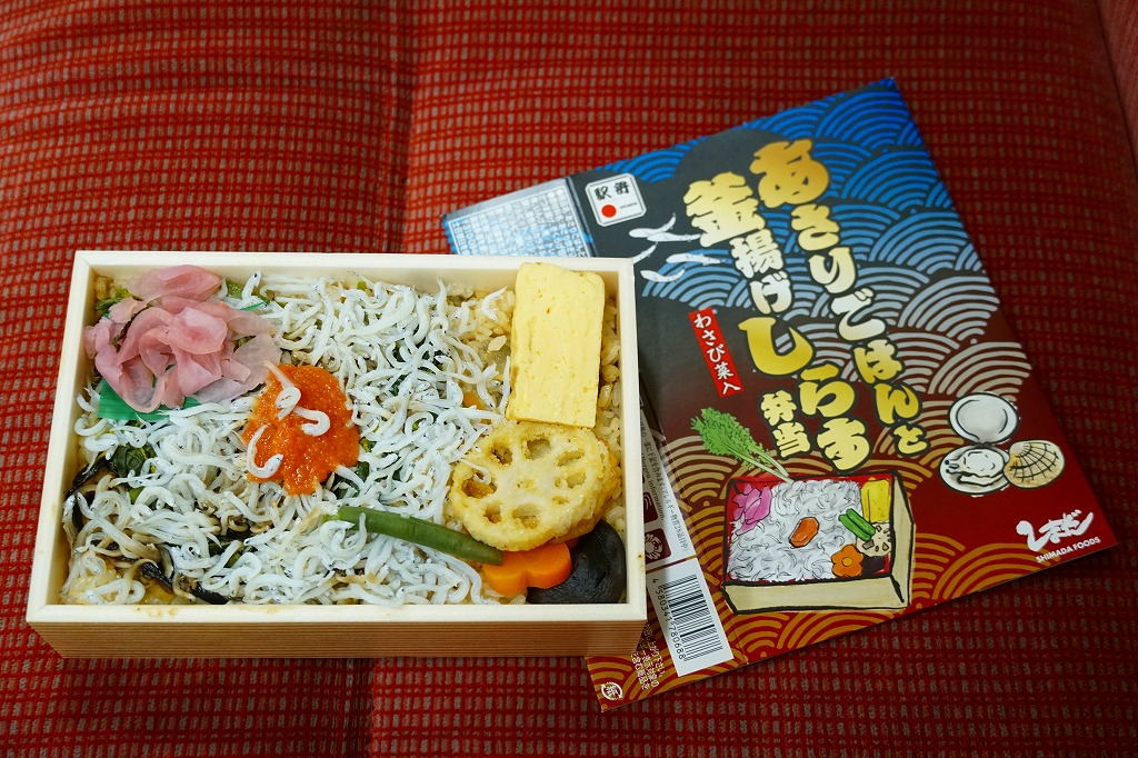 長方形の容器に御飯を詰め、シラスで覆い、梅干しを据えて、明太子ペーストと大根桜漬を添えて、おかずに煮物とアンコウ唐揚を置く。分かりやすくて食べやすく、シラスの駅弁として浜松駅や大船駅より充実感があった。価格は2017年の発売時や2019年の購入時で1,050円、2020年時点で1,100円、2023年時点で1,250円、2024年9月20日から1,350円。