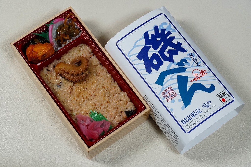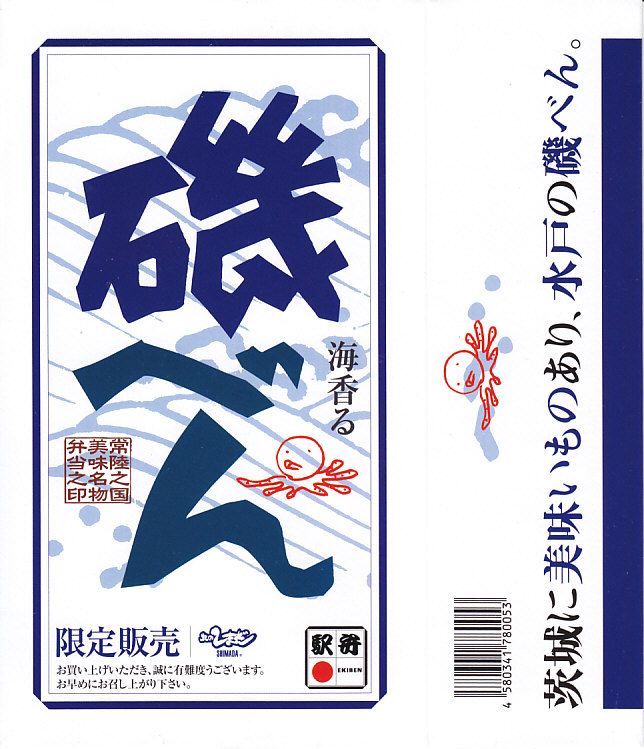 日本鉄道構内営業中央会が駅弁誕生140周年を記念して、会員のうち34社が原則として2025(令和7)年10月1日から販売した、復刻をテーマにした駅弁の、水戸駅弁のしまだフーズバージョン。加えてJR東日本の駅弁キャンペーン「駅弁味の陣2025」にエントリーし、10月1日から11月30日まで販売した。上記のとおり2011年から2019年まで売られた水戸駅弁「磯べん」の復刻。当時のスリーブは掛紙になり、価格も上がったが、中身はそのまんま、タコの炊込飯にアンコウの天ぷらとアサリの佃煮などを添えるものだった。また消すには惜しい美味。同時に発売の「牛べん」とは違い、こちらは販売が続かない。