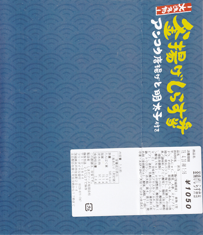 この駅弁は2008年5月頃の調製元の休業により売られなくなり、2010年1月に駅弁売店そのものが閉店したため、今後は入手できないのではと思う。