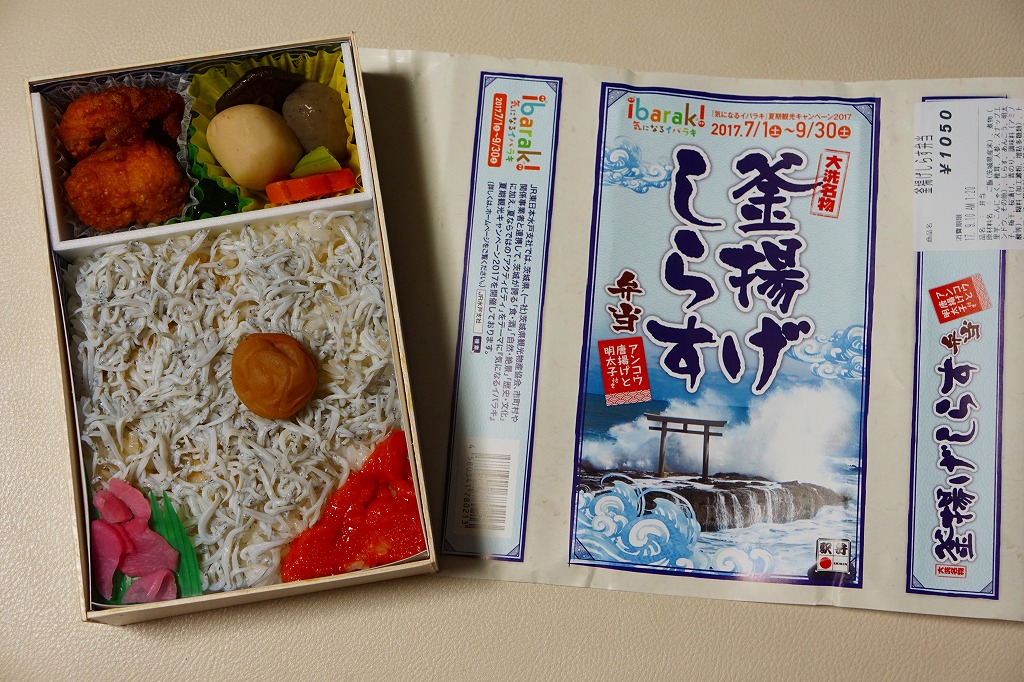 2022(令和4)年10月1日に水戸駅や東京駅などで発売、その前月から駅弁催事で販売、10月からのJR東日本の駅弁キャンペーン「駅弁味の陣2022」にエントリー。茨城県産コシヒカリのあさり御飯を、わさび菜漬けとキクラゲ佃煮で覆い、釜揚げしらすでまた覆い、明太子と大根桜漬で彩り、玉子焼、れんこん揚げ、にんじん煮、しいたけ煮を添える。そんな内容は2017年発売の水戸駅弁「釜揚げしらす弁当」に似ていて、こちらは具の種類で、あちらはおかずの種類で、味を付加する。駅弁では他にあまり記憶のない、アサリとシラスの組合せは、いけると思う。価格は2022年の発売時で1,100円、2024年時点で1,150円、9月20日から1,280円。