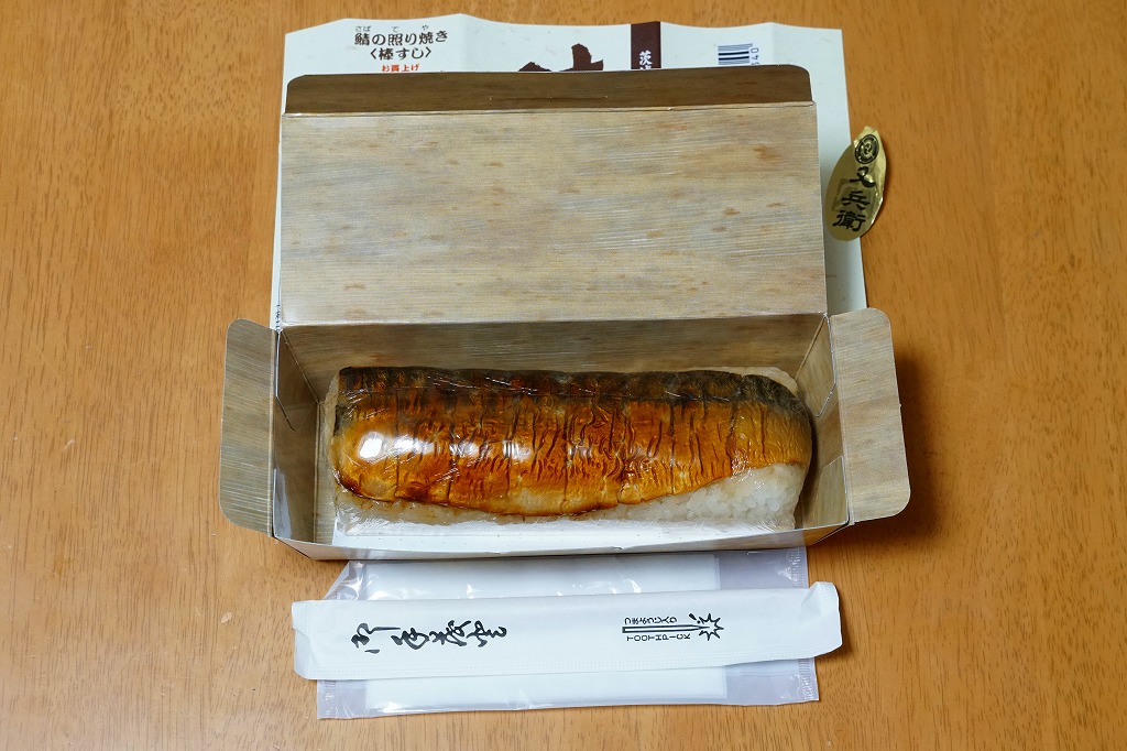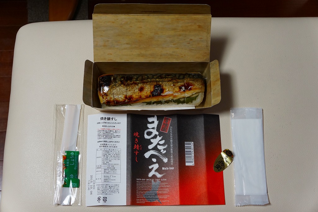 2010(平成22)年3月11日の茨城空港の開港とともに、事実上の空弁としてデビュー、2012(平成24)年までに「またべえ」の名を加えて、事実上の水戸駅の駅弁にもなった焼きサバ寿司。竹皮柄のボール紙箱に、細身で小柄な焼きサバ寿司が1本、板とともにラップでぐるぐる巻きにされて収まる。商品の宣伝文は、掛紙で英語でのみ記される。密封パックでないため、消費期限は4日間で、傾け続けると脂がしみ出る。