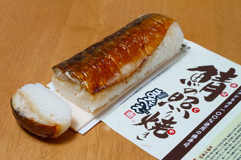 米に対してサバの分量が厚く、その間にたっぷり挟むショウガと大葉が、焼サバ寿司の味に深みを持たせる、もっとも、焼サバ寿司はひたちなかや常陸国の名物ではなく、調製元の主力商品かと。英文でも食品表示でもノルウェー産のサバの使用が明記され、若桜の鯖街道に関する記述も見られる。JR東日本の駅弁キャンペーン「駅弁味の陣」では、勝田駅の駅弁と紹介する。価格は2015年の購入時で1,050円、2017年時点で1,080円、2020年時点で1,125円、2023年時点で1,200円。