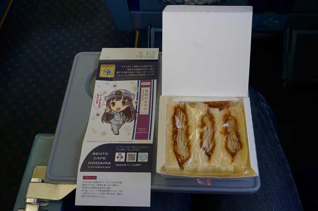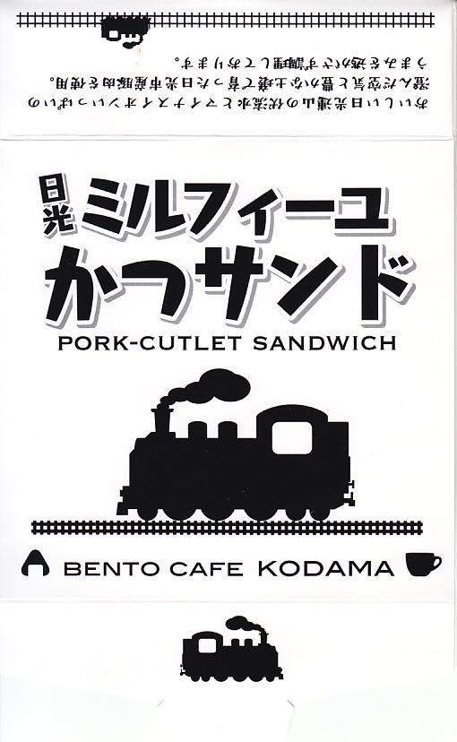 鬼怒川温泉駅の駅舎内にある飲食店「BENTO CAFE KODAMA(弁当カフェこだま)」で、2014(平成26)年7月18日または8月1日のお店の開業日から販売されている箱入りサンドイッチ。おそらく2017(平成29)年8月の東武鉄道のSL列車「SL大樹」の運行開始に合わせ、紙箱を白黒の蒸気機関車の絵柄にしたものと思われる。2020年時点でSL列車の運転日にこの絵柄の紙箱を使うという。