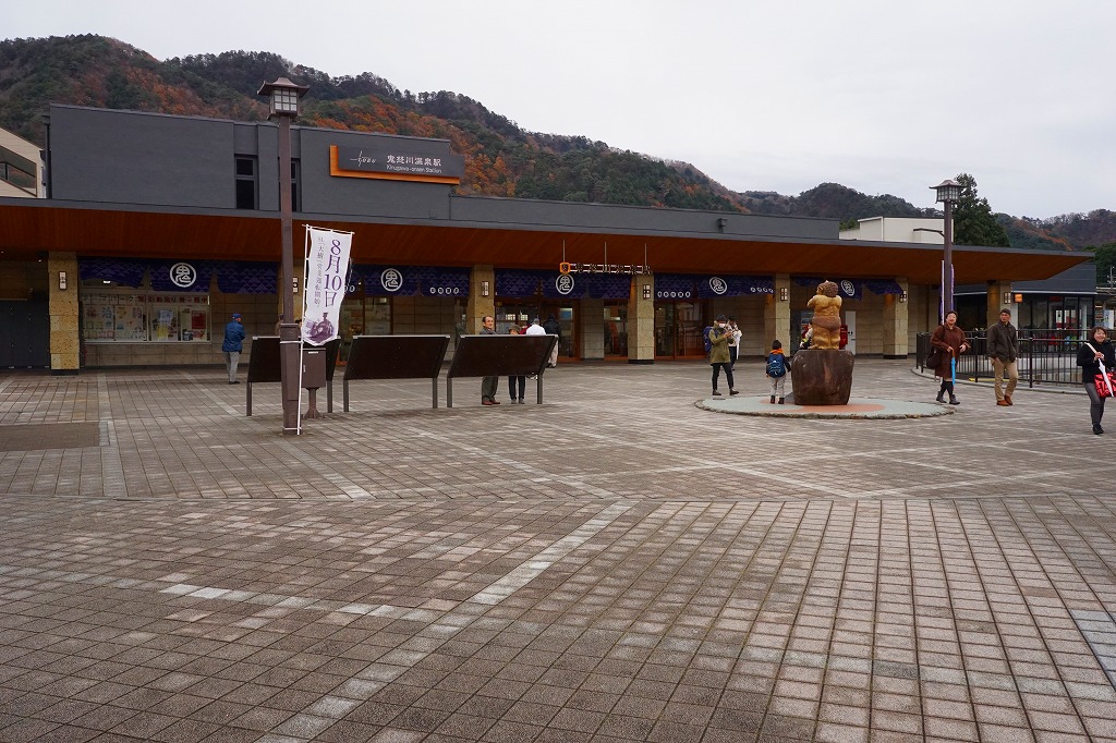 東京都内から特急列車で約2時間。鬼怒川温泉は、鬼怒川の上流の峡谷に広がる温泉地。昭和時代に団体旅行向け大型旅館が林立し、高度経済成長期からバブル経済の頃まで大いに栄えた。駅弁は東武日光駅と同じものが売店で売られるほか、2014年から駅のカフェが駅弁を売る。1919(大正8)年3月17日開業、栃木県日光市鬼怒川温泉大原。
