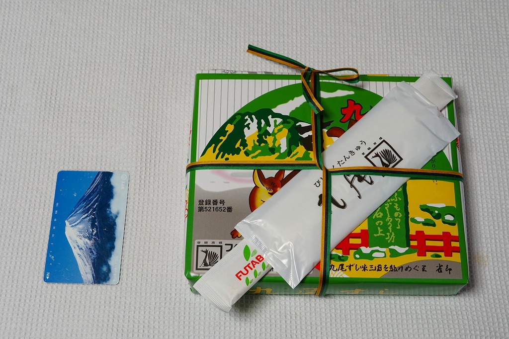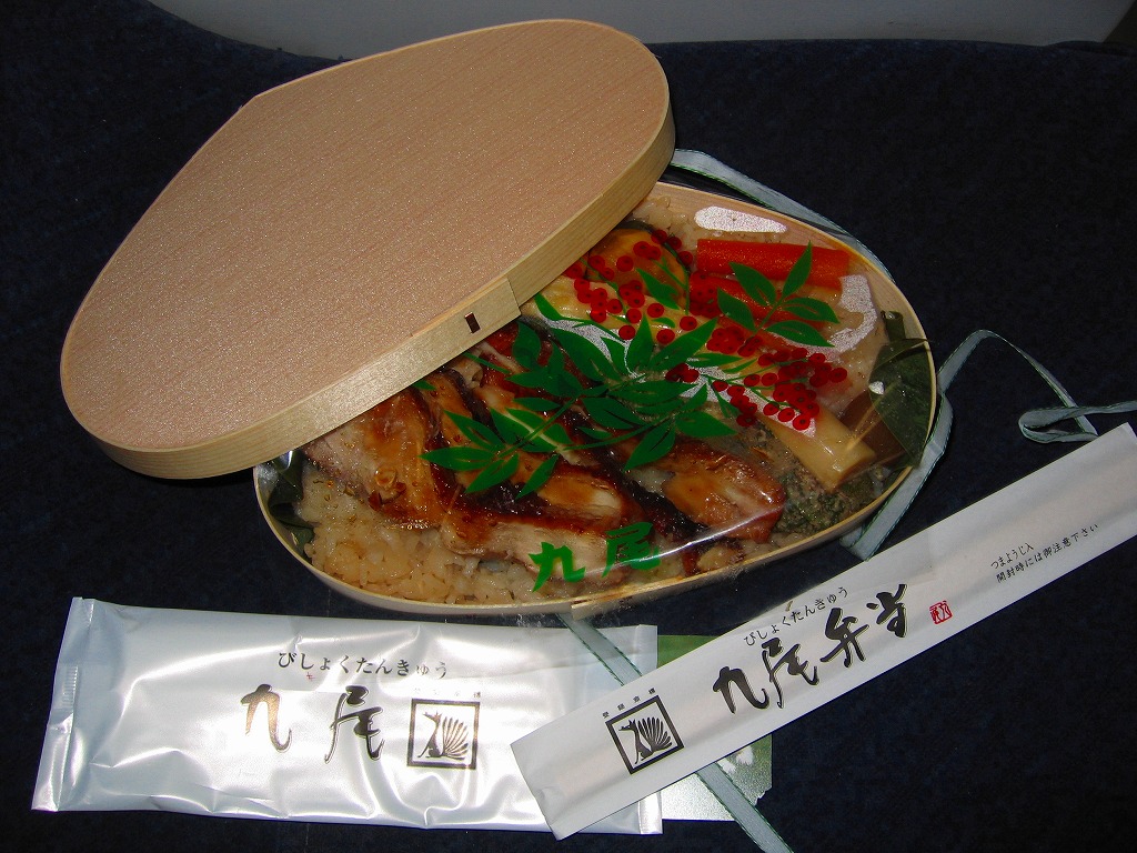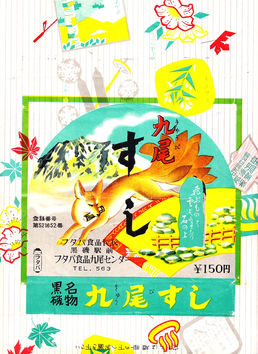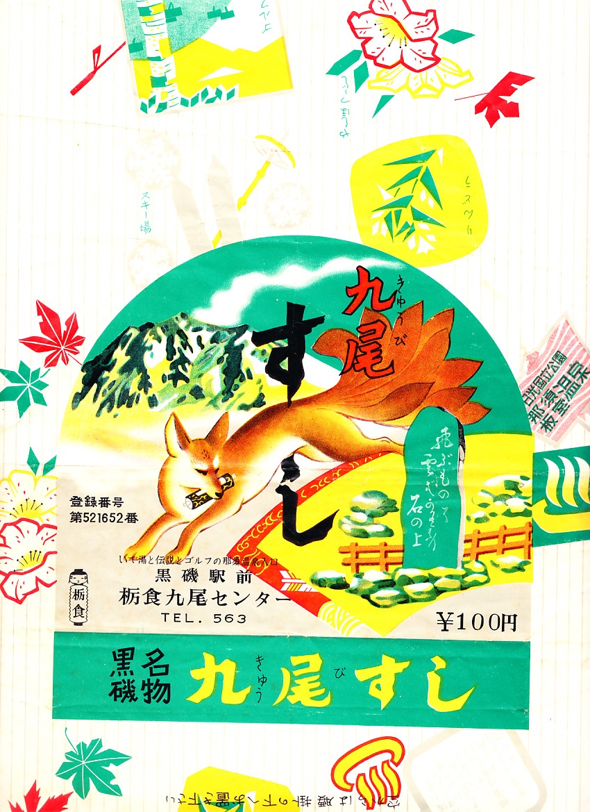 昭和30年代までに黒磯駅で発売された、かつての名物駅弁「九尾すし」の復刻版。2005(平成17)年11月限りですべての黒磯駅弁が失われた後、2012(平成24)年の秋に当時の駅弁屋であるフタバ食品が運営する、東北自動車道下り線の上河内サービスエリアで復活した。2016(平成28)年の秋までに土日曜日に限り、JR宇都宮駅の駅ビル「PASEO」の1階にある店舗「縁(えにし)」で買えるようになり、2020(令和2)年の同店の閉店で2階の土産物店「とちびより」へ移動した。