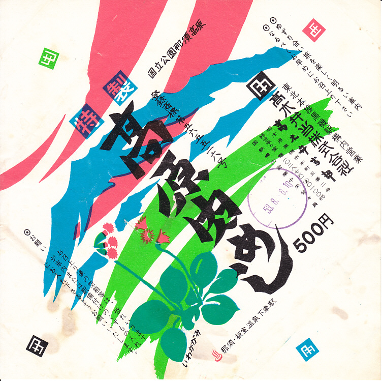 1978(昭和53)年8月6日10時の調製と思われる、昔の黒磯駅弁の掛紙。下記の掛紙「高原肉めし」に「特製」の名を加え、オイルショックを経て値段が倍になったが、中身は変わりなかったのではないかと思うし、絵柄も変わらない。