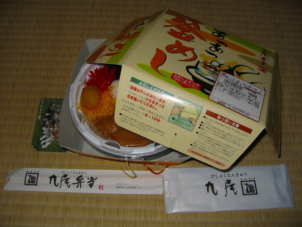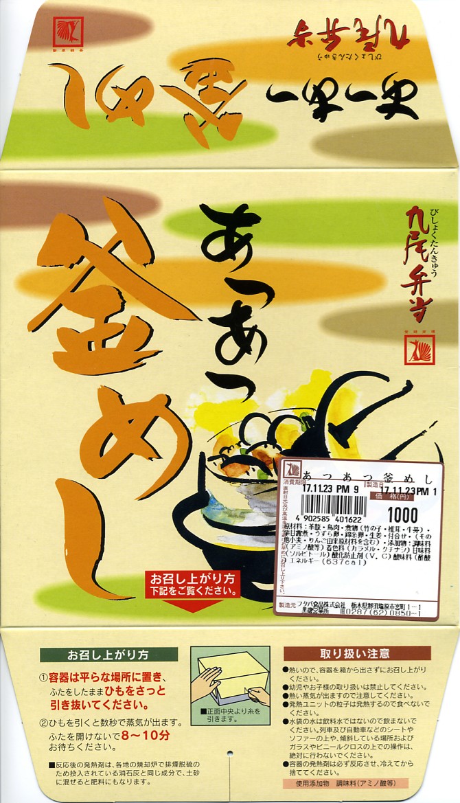 1990年代に発売したと思われる、黒磯駅弁「九尾釜めし」の加熱機能付き容器版。円形の加熱機能付き容器をボール紙のパッケージに収める。中身は九尾釜めしと同じく、茶飯の上に鶏肉、ごぼう、椎茸、うずらの卵、栗、錦糸卵、紅生姜、ラッキョウなどを載せるもの。