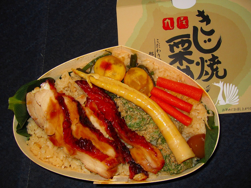 経木の栗型容器に割りばしとおしぼりを添えて紙ひもでしばり、駅弁の名前を書いたボール紙の枠にはめる。中身は笹の葉一枚を敷いて茶飯を敷き詰め、その上に鶏肉きじ焼と焼栗に山菜などを載せるもの。栗飯ではなく栗入り鶏飯で、そのすべてに自然な高品質を感じずにいられない秀作。しかし調製元の弁当事業ごとの駅弁からの撤退により、2005年11月30日限りで失われた。