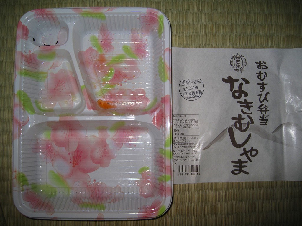 安いのに味は良いけれども、あまりにも見栄えが悪い。調製元公式サイトの掲載画像からおかずが数点間引かれているので、悪い方向にコストダウンを図った印象がある。とはいえ、東武日光線の特急や快速で食べるお弁当としては、コンビニ弁当と同じ価格でそれ以上の雰囲気を出す役割は、まだ備えていると思う。価格は2009年の購入時で500円、2014年4月の消費税率改定で520円。2014年または2017年までの販売か。