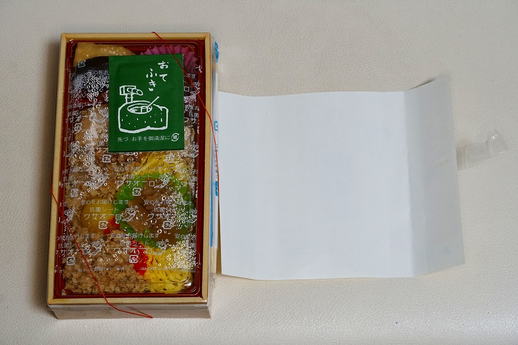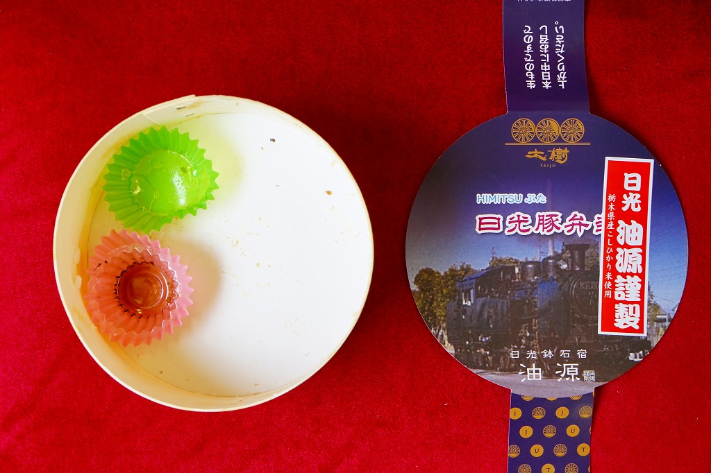 2010(平成22)年11月19日に購入した、東武日光駅弁の掛紙。上記の2022年のものと、おおむね変わらない。のちに「おいしい」「元祖」の文字を書き加えたことがわかる。中身も変わらない。