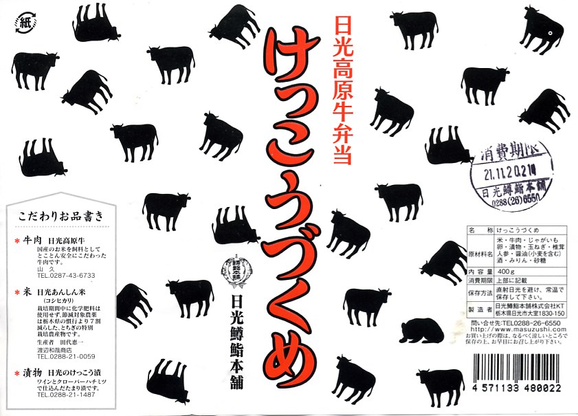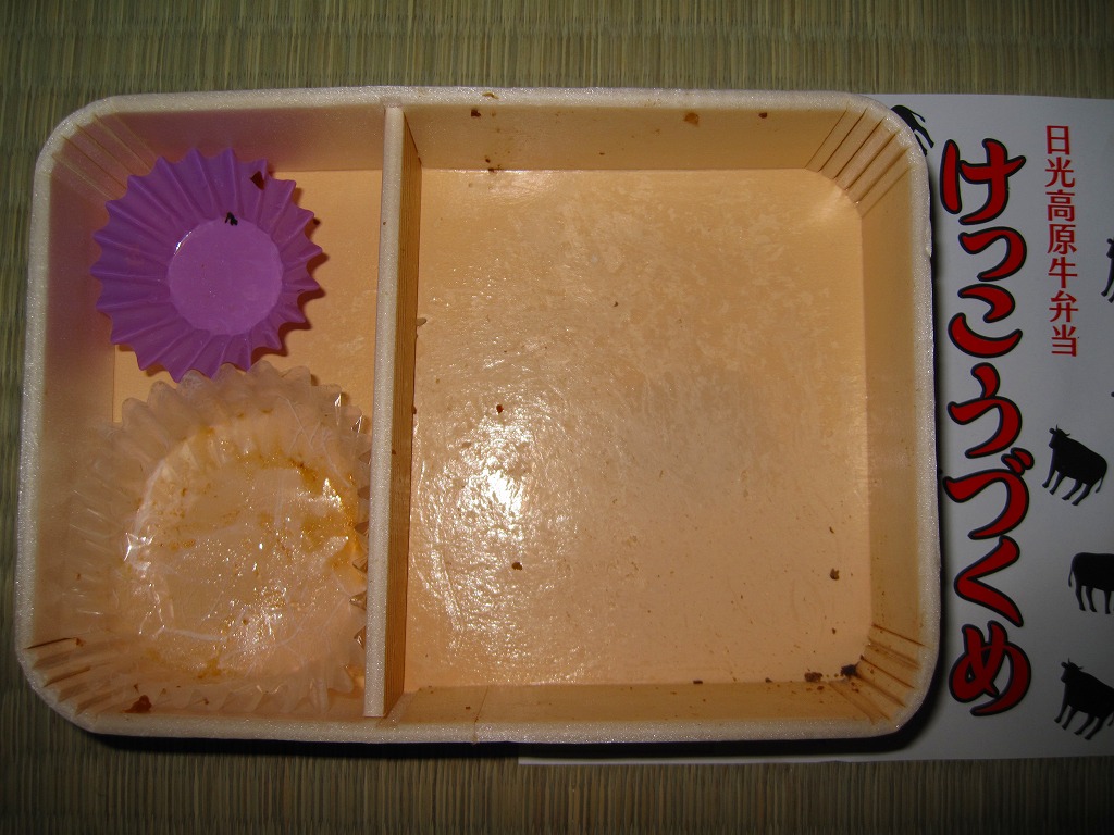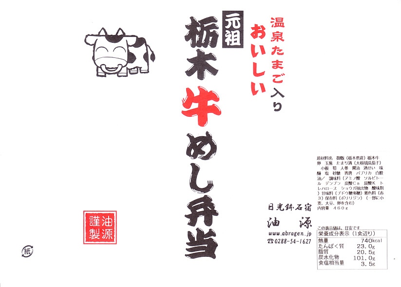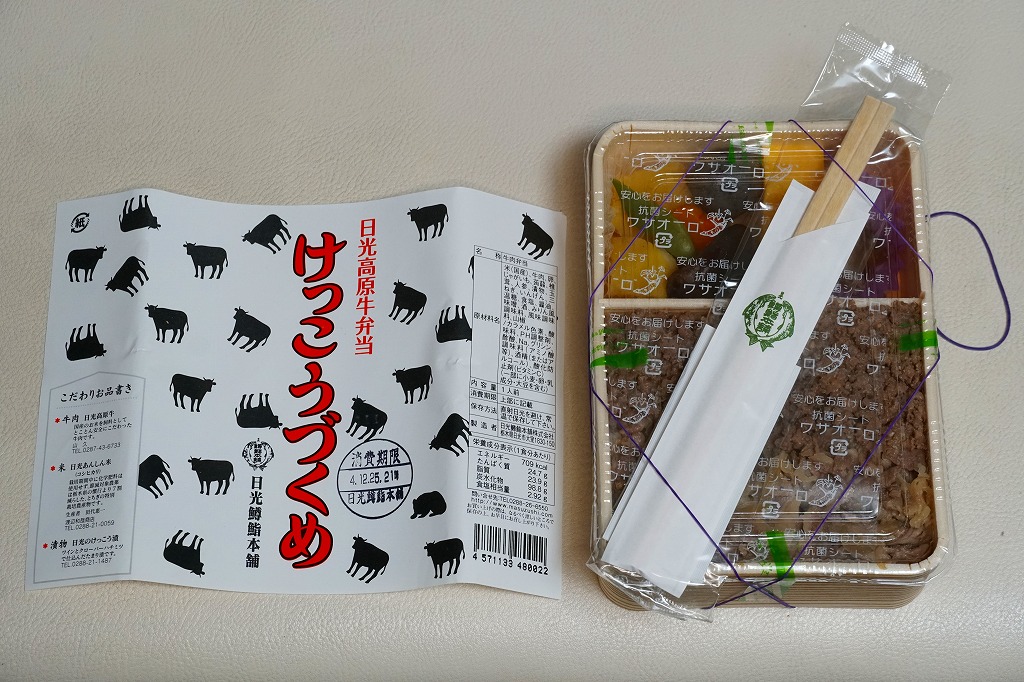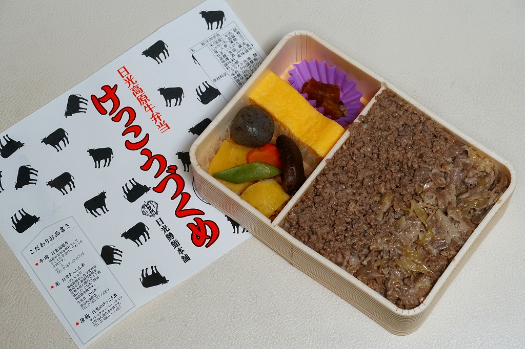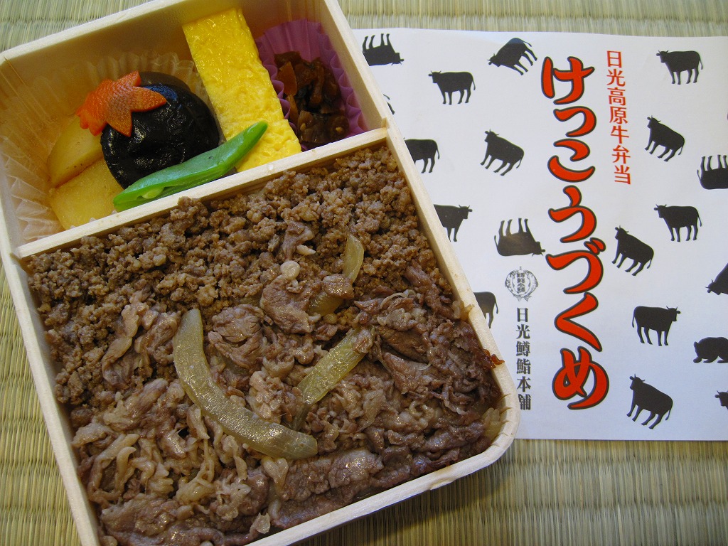 つまり米沢で人気の有名駅弁「牛肉どまん中」の模倣であるが、単なる模倣では良い味は出ないし、この手の駅弁を模倣できる駅弁屋はあまり見あたらない。牛肉は全国農業協同組合連合会栃木県本部(JA全農とちぎ)のブランド牛「日光高原牛」を使用、米は掛紙に生産者の名前を書いた栃木県今市市のコシヒカリを使用、漬物は日光名物のたまり漬のひとつ「けっこう漬」を使い、地場と品質をアピールする。関東地方ではナンバーワンの牛丼駅弁ではないかと思う。価格は2009年時点で1,050円、2014年4月の消費税率改定で1,080円、2020年時点で1,150円、2022年時点で1,250円、その年末までに1,300円、2025年時点で1,500円。